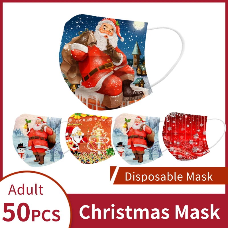 Смешанные 50 шт. одноразовые рождественские маски для взрослых маск...