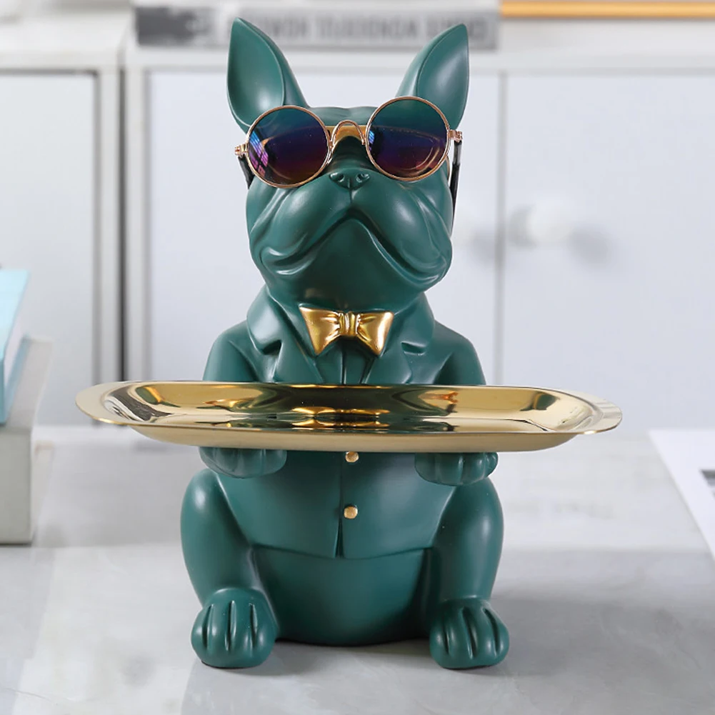 Скульптура для классной собаки из смолы, декоративная фигурка бульдога, поднос для хранения монет, банка, вход, ключ, снэк-держатель, современное искусство, статуя, украшение для дома, рабочего стола