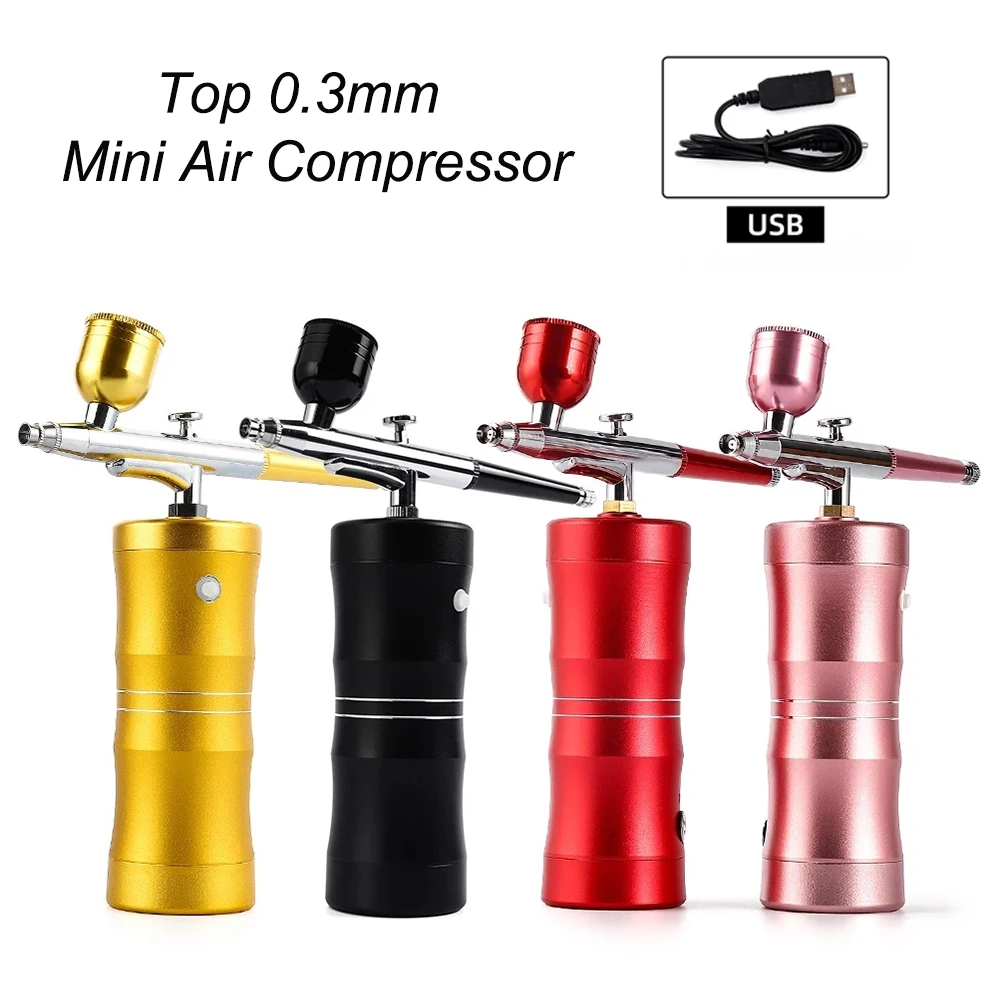 Мини воздушный компрессор в комплекте, Аэрограф, распылитель, пистолет для дизайна ногтей, тату, рукоделие, торт, живопись, Топ 0,3 мм, нанокислородный инжектор, противотуманный распылитель