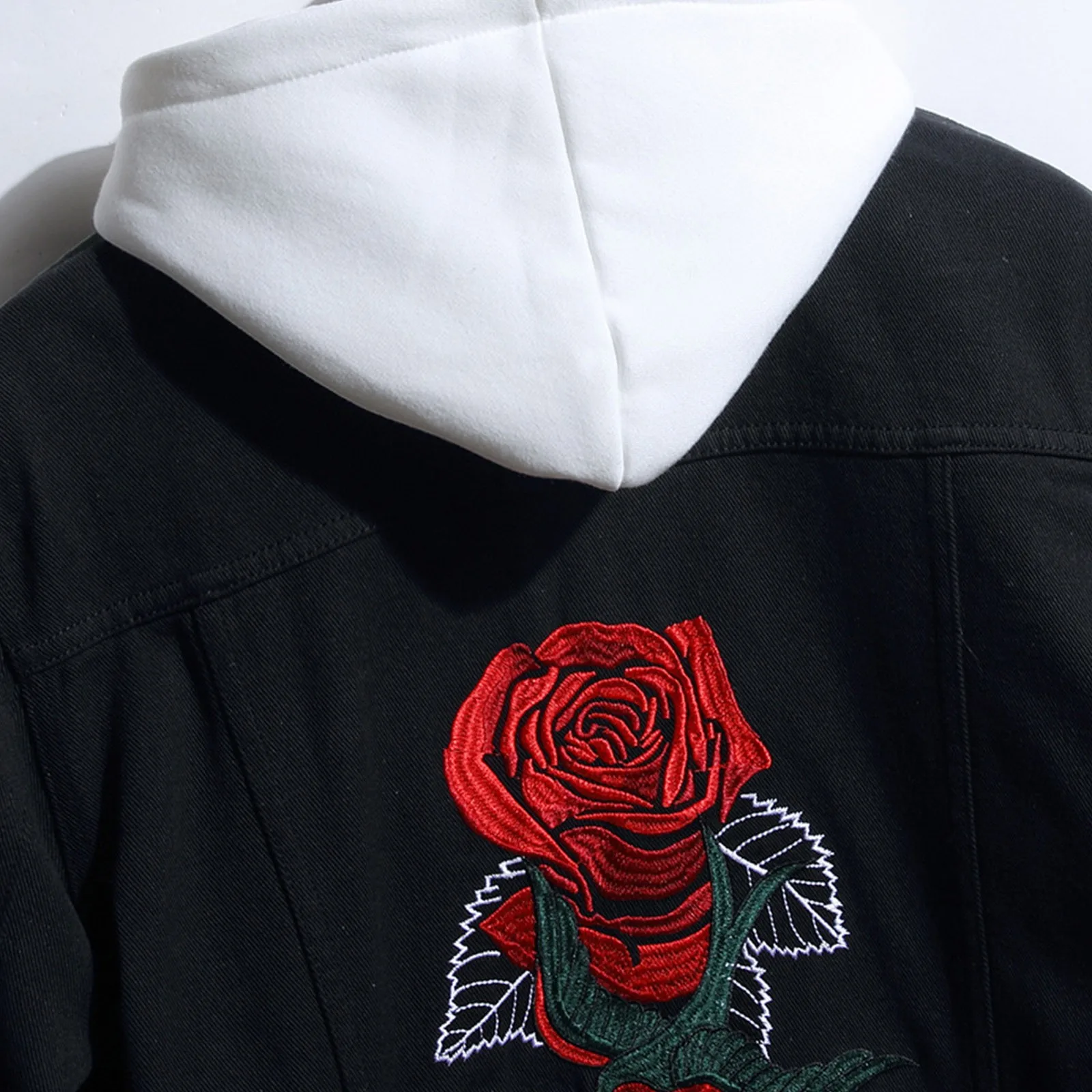 Куртка джинсовая мужская, черная, с вышивкой в виде Розы и птиц, на осеньзиму, свободная, # t3g, 2021