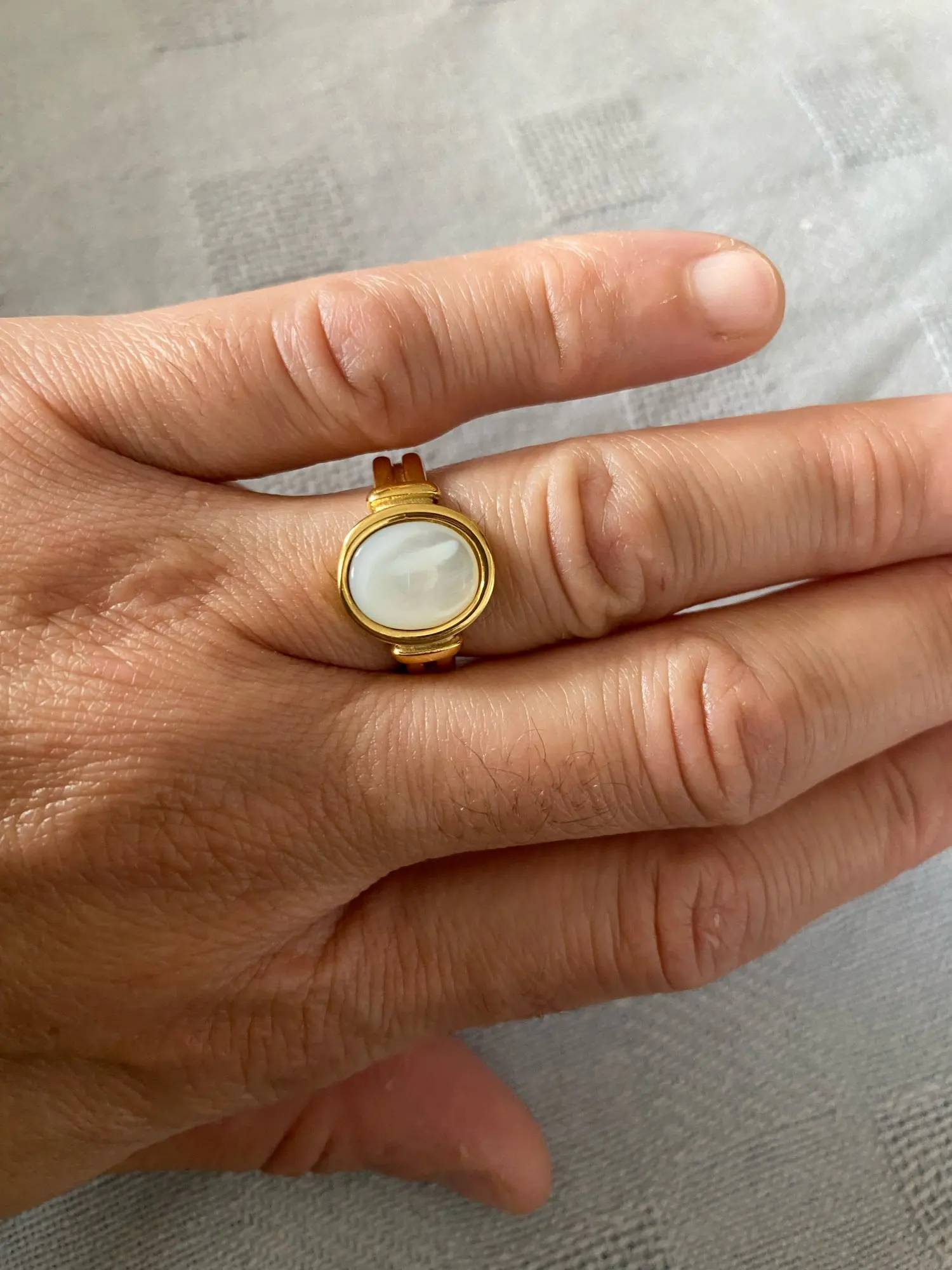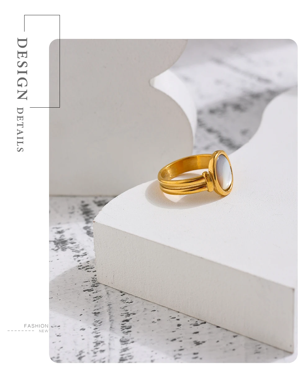 Кольцо из нержавеющей стали Yhpup с натуральной ракушкой, новое французское металлическое золото, женское ювелирное изделие из титановой стали, женские кольца