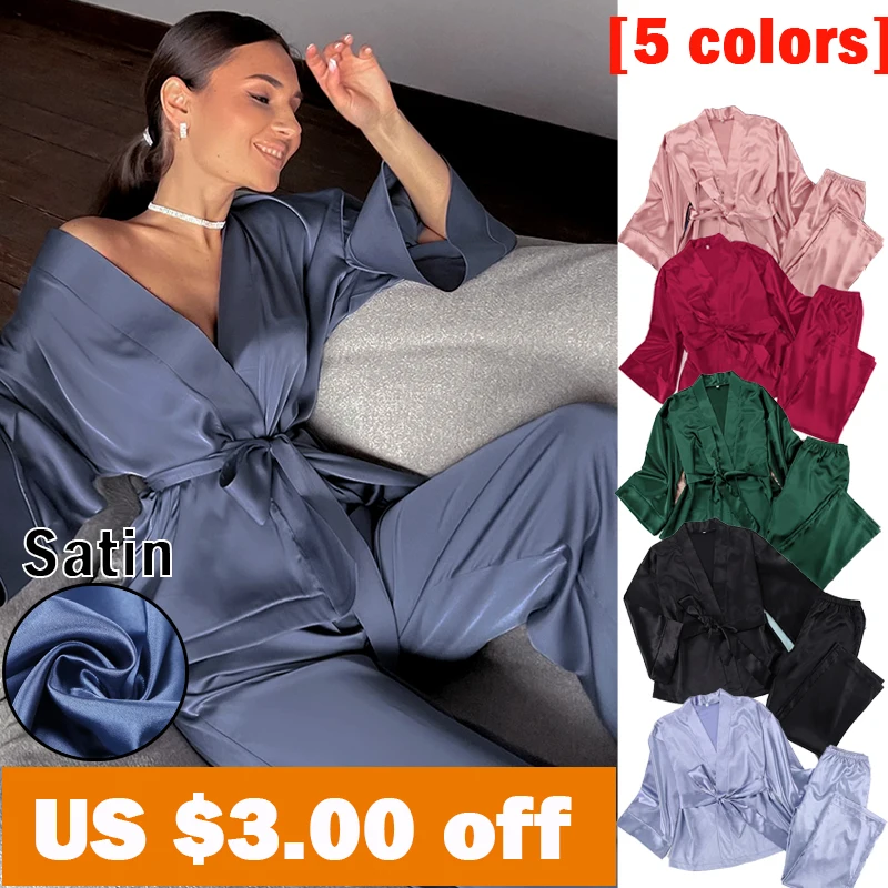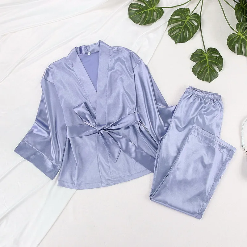 Пижама женская атласная, с рукавом три четверти, однотонная, весна, 2021