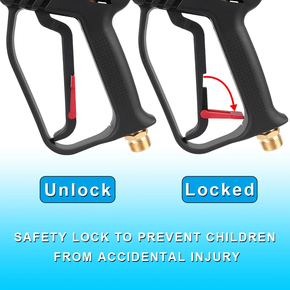 Поставляется с 5 различными сменными насадками, 0 °, 15 °, 25 °, 40 ° и 60 ° градусовЛатунный быстроразъемный соединитель для быстроразъемного соплаПистолет Номинальный до 280 бар-4000 PSI, максимальный поток 25 л/м, максимальная температура 150 градусовЗамок триггераM22 Штекерный соединитель, поставляемый по стандарту-подходит прямо к вашему шлангу мойки давления M224000psi пусковое устройствоБыстрый адаптер для шланга Karcher или NilfiskМатериал: латунь + пластикЦвет: черныйСоветы: