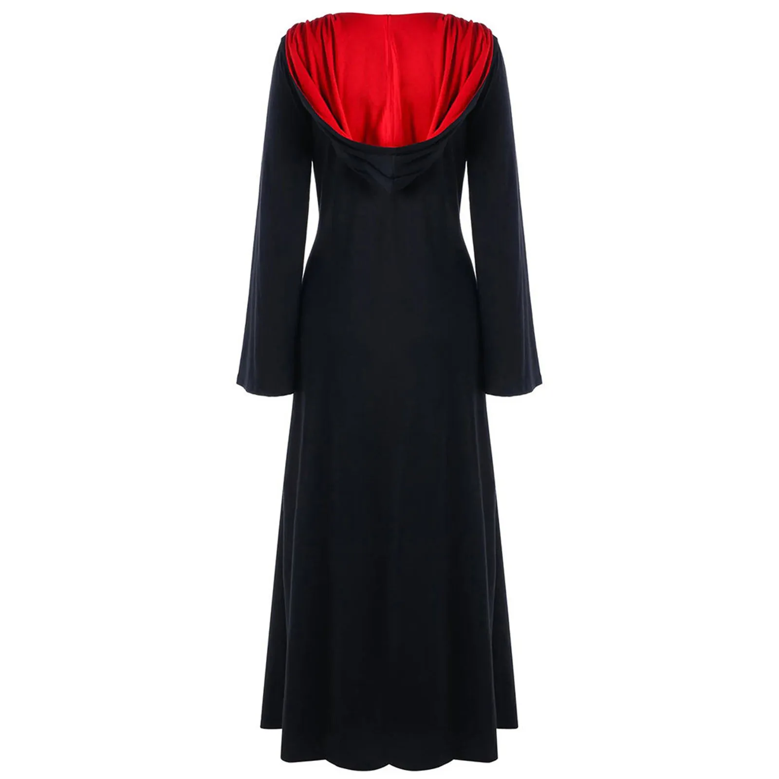 Женское платье-макси с капюшоном на Хэллоуин размера плюс, на шнуровке, в стиле пэчворк, с длинным рукавом