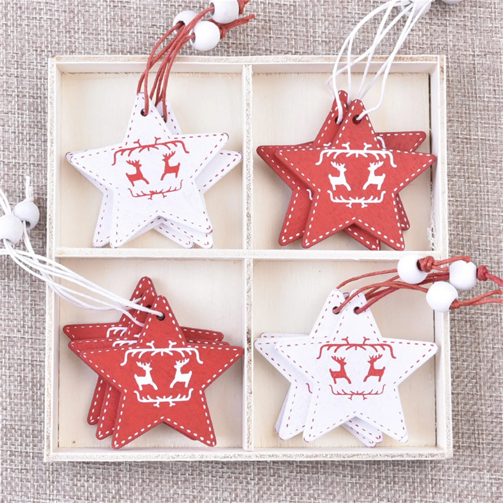 Украшения из натурального дерева, подвеска, искусственное сердце, звезда, снежинки, Рождественская елка
