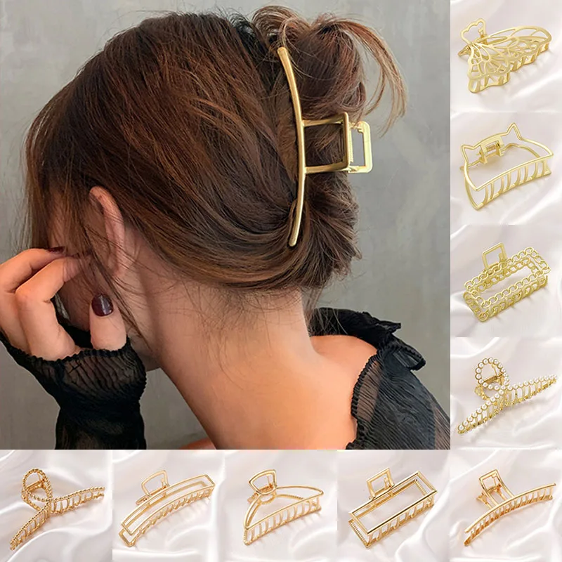 Заколка-краб для волос женская золотистая в стиле ретро, 2021