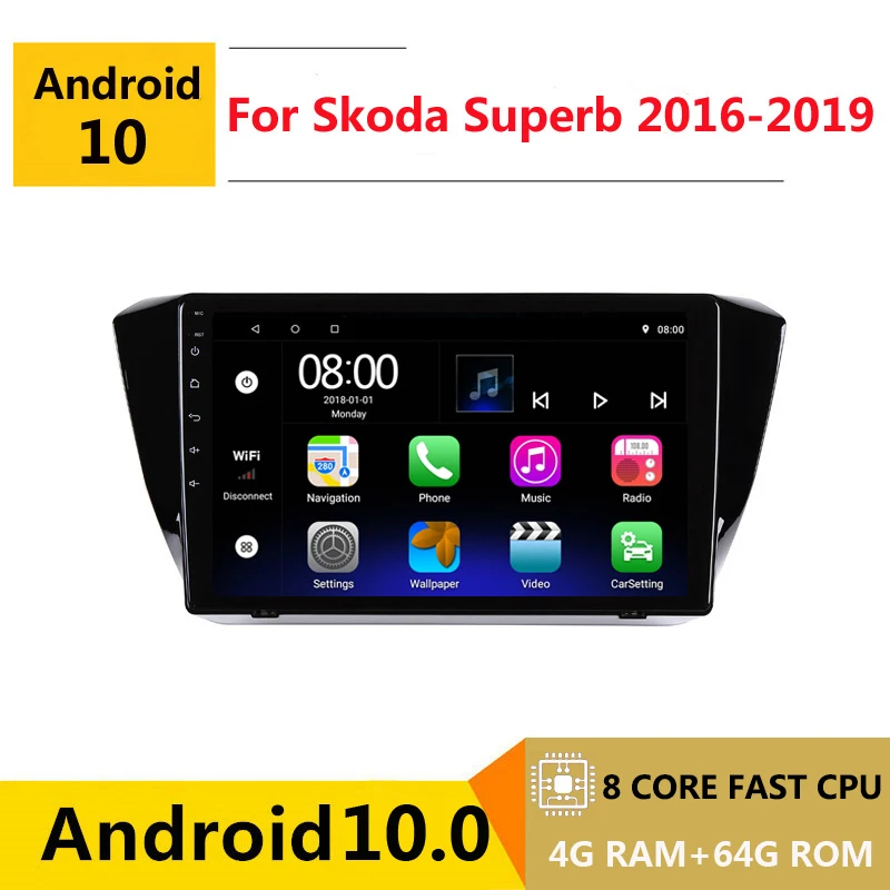 8-ядерный автомобильный DVD-плеер Android 10, мультимедийный плеер с GPS для Skoda Superb 3 2016 2017 2018 2019, аудио, автомобильное радио, стерео навигация