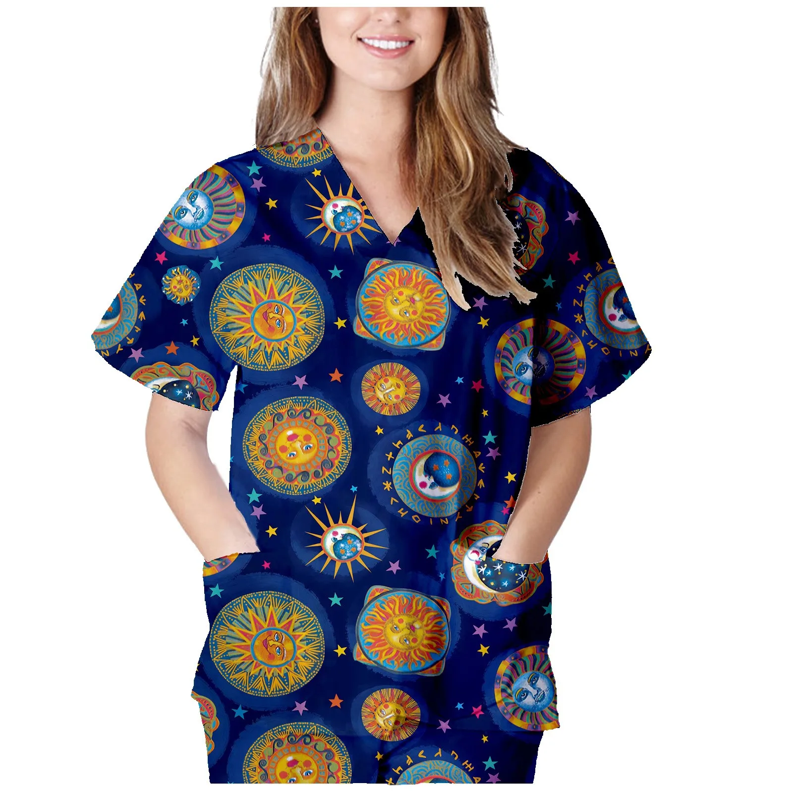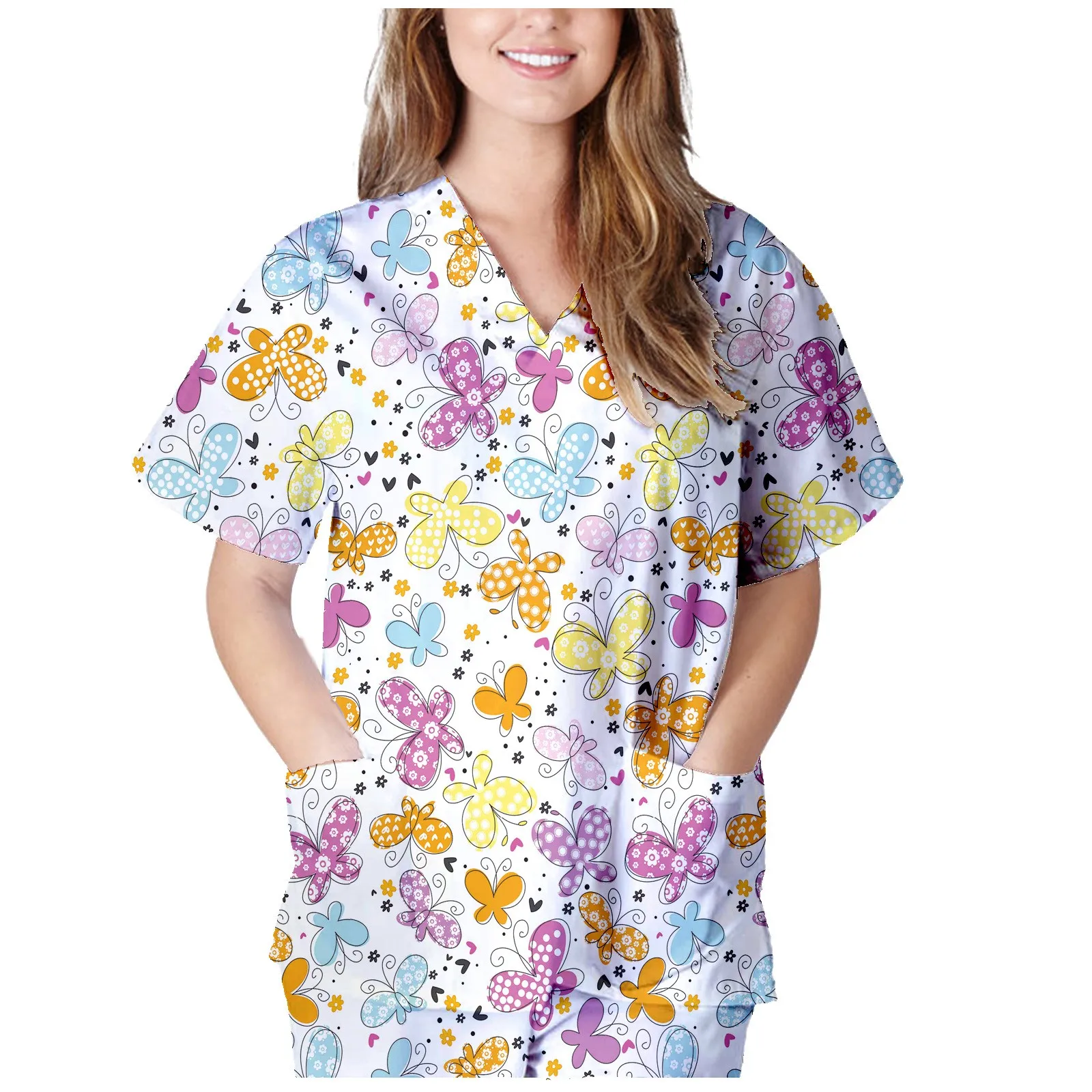 Женская рубашка с коротким рукавом и V-образным вырезом, с мультяшным принтом