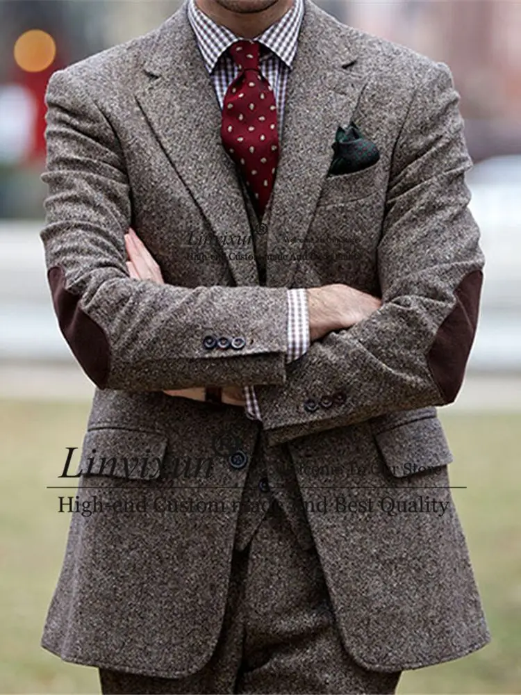 Классические твидовые мужские костюмы, зимний женский костюм из 3 предметов, деловой мужской блейзер, тонкий свадебный смокинг для жениха, официальный костюм для мужчин