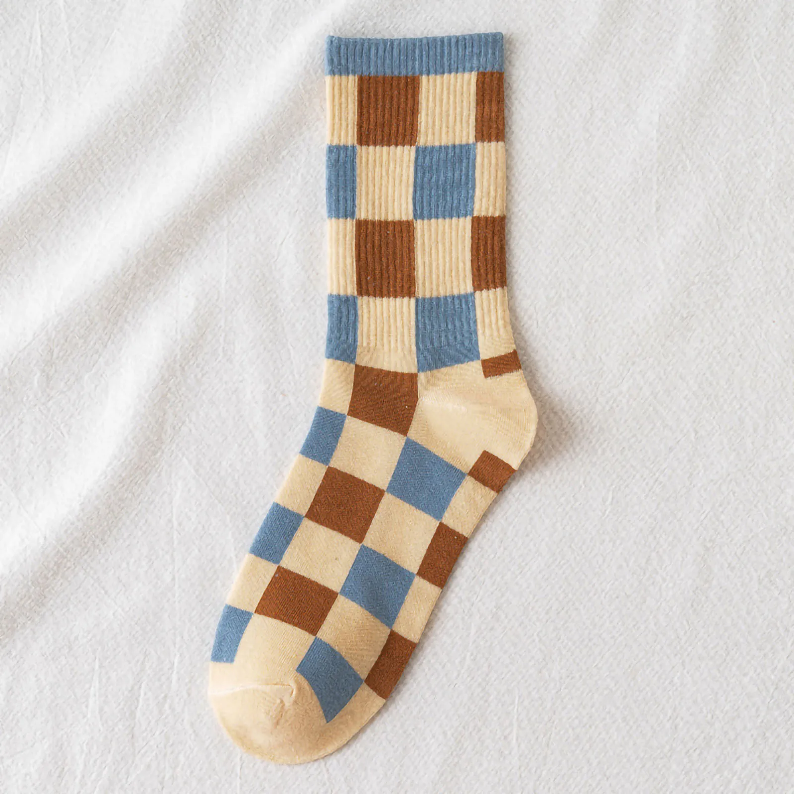 Женские осенне-зимние полосатые синие клетчатые спортивные носки
