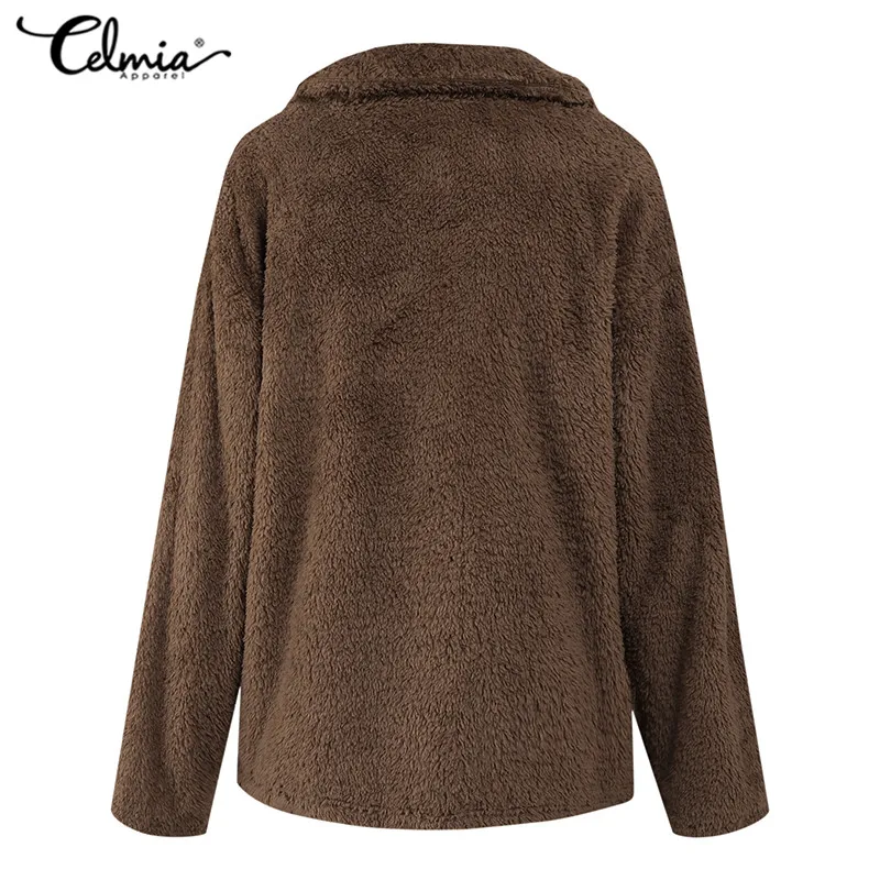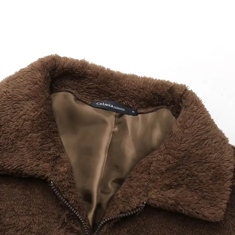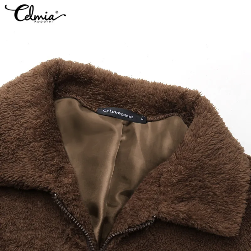 Винтажная верхняя одежда на молнии, женское плюшевое пальто из искусственного меха, зима 2021, уличная одежда Celmia, куртки, повседневное свободное однотонное пальто с длинным рукавом