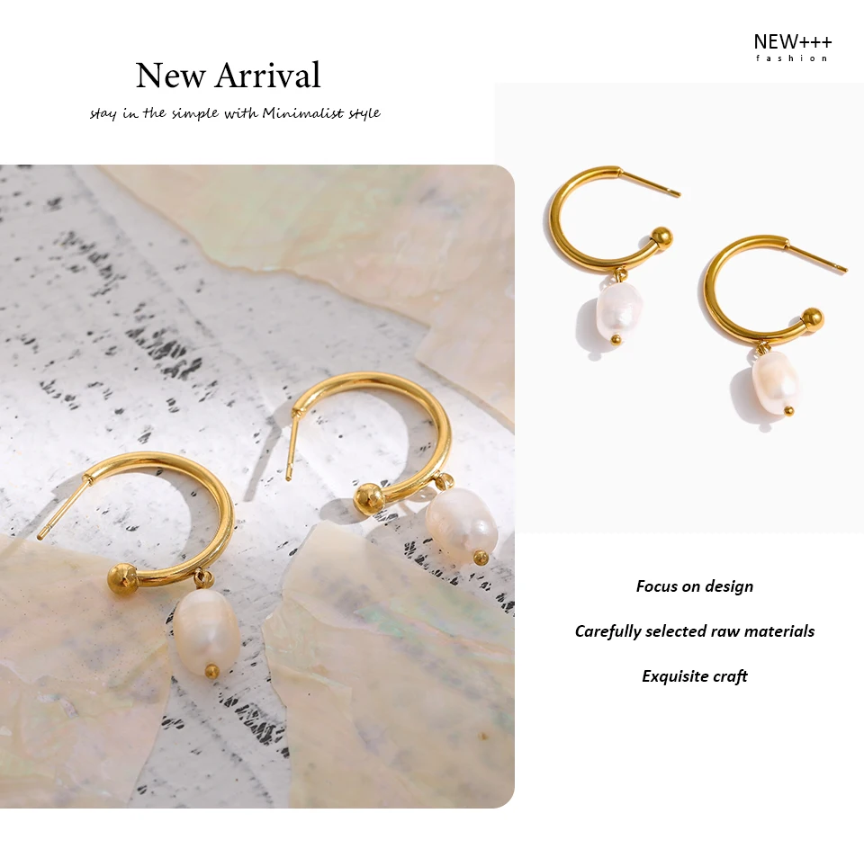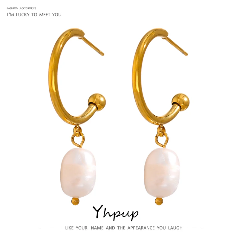Висячие серьги Yhpup из натурального пресноводного жемчуга, висячие серьги из нержавеющей стали 316 с золотым покрытием из ПВД, водонепроницаемые Модные серьги для женщин, бижутерия