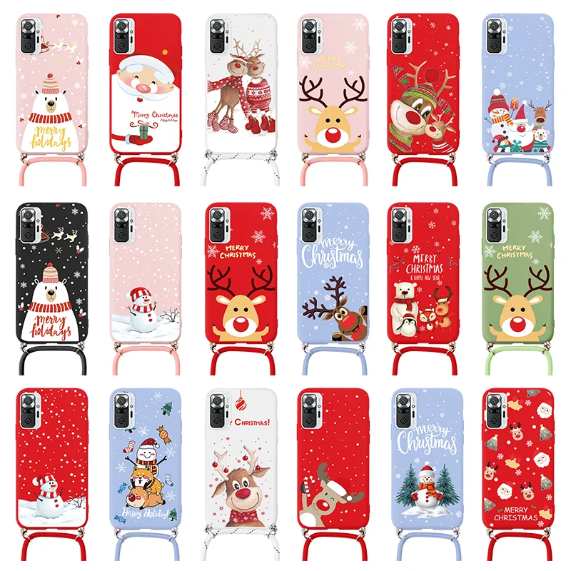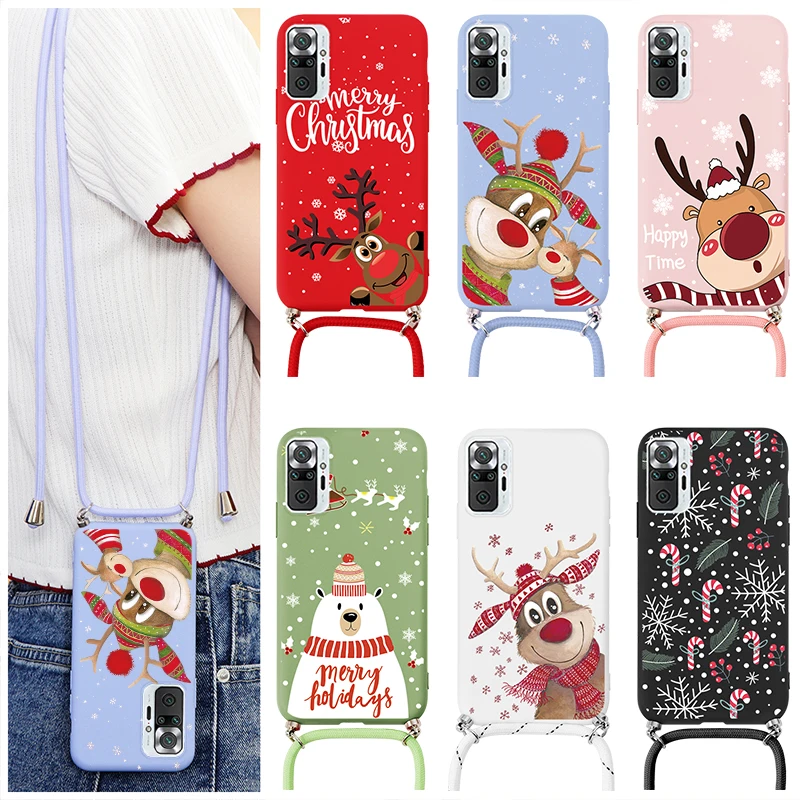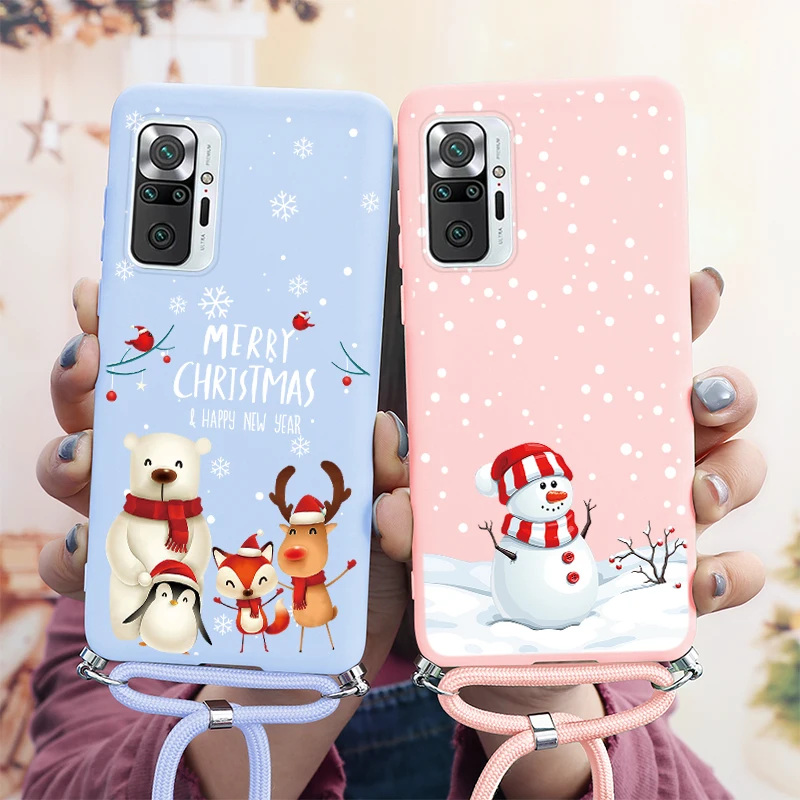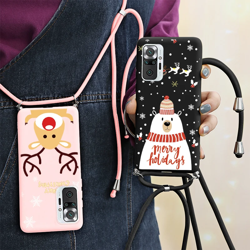 Чехол с цепочкой и ожерельем для Xiaomi Redmi Note 10 Pro 4G, Рождественский чехол для Redmi note10 10s Pro Max, чехол с ремешком и шнурком