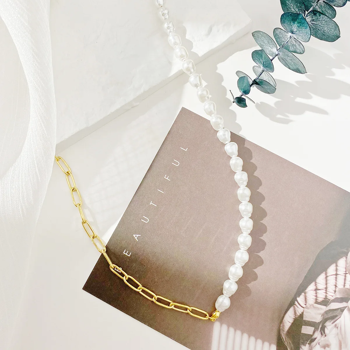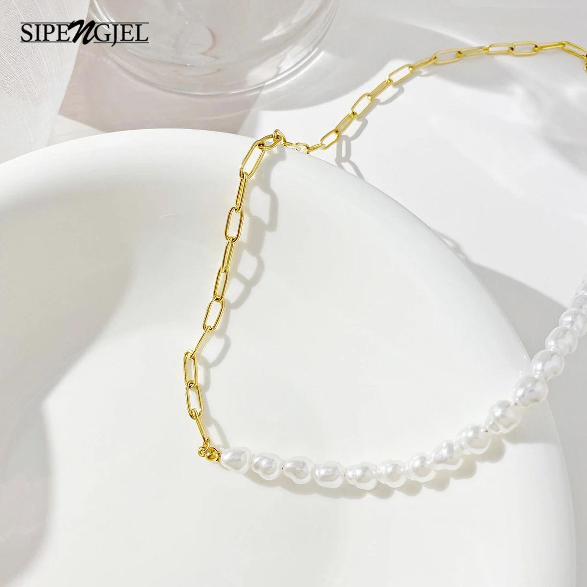 SIPENGJEL, подвеска из нержавеющей стали с натуральным жемчугом, шейный платок, панковские шармы, толстая цепочка, колье, ожерелье для женщин, вечерние ювелирные изделия, 2021