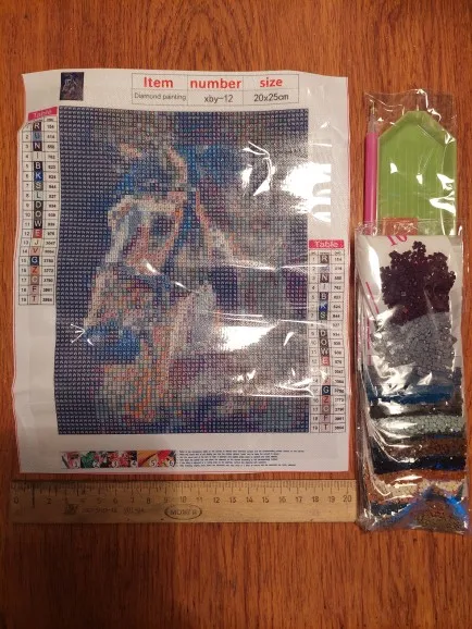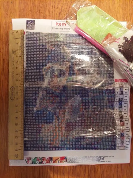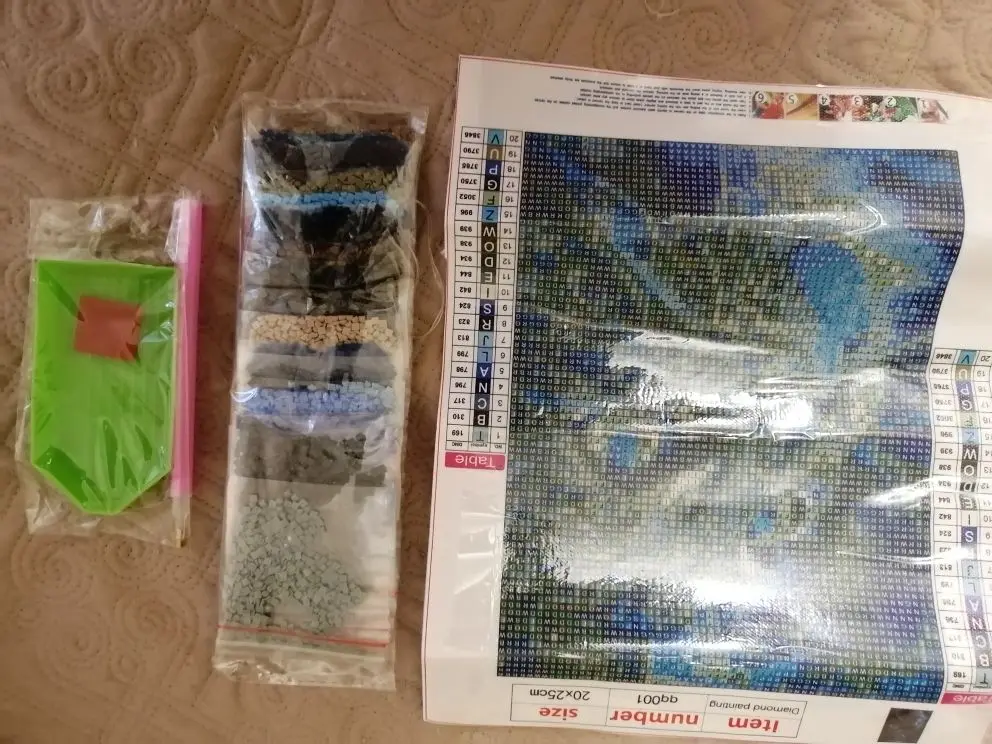 по цветам картинка СОВСЕМ не соответствует той картинке, что продавец показывает на сайте. Вместо золотистых, бронзовых оттенков - светло бежевые цвета. Вся привлекательность теряется. Приложен только один инструмент для приклеивания единичных бусин, для приклеивания большего числа бусин инструмента не приложено. Разочарование.