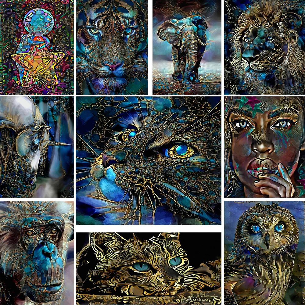 Картина из круглых страз 5D, вышивка крестиком, животные, кошки и львы, сделай сам, квадратная Мозаика из страз, красочная фантазия, мультяшная сова