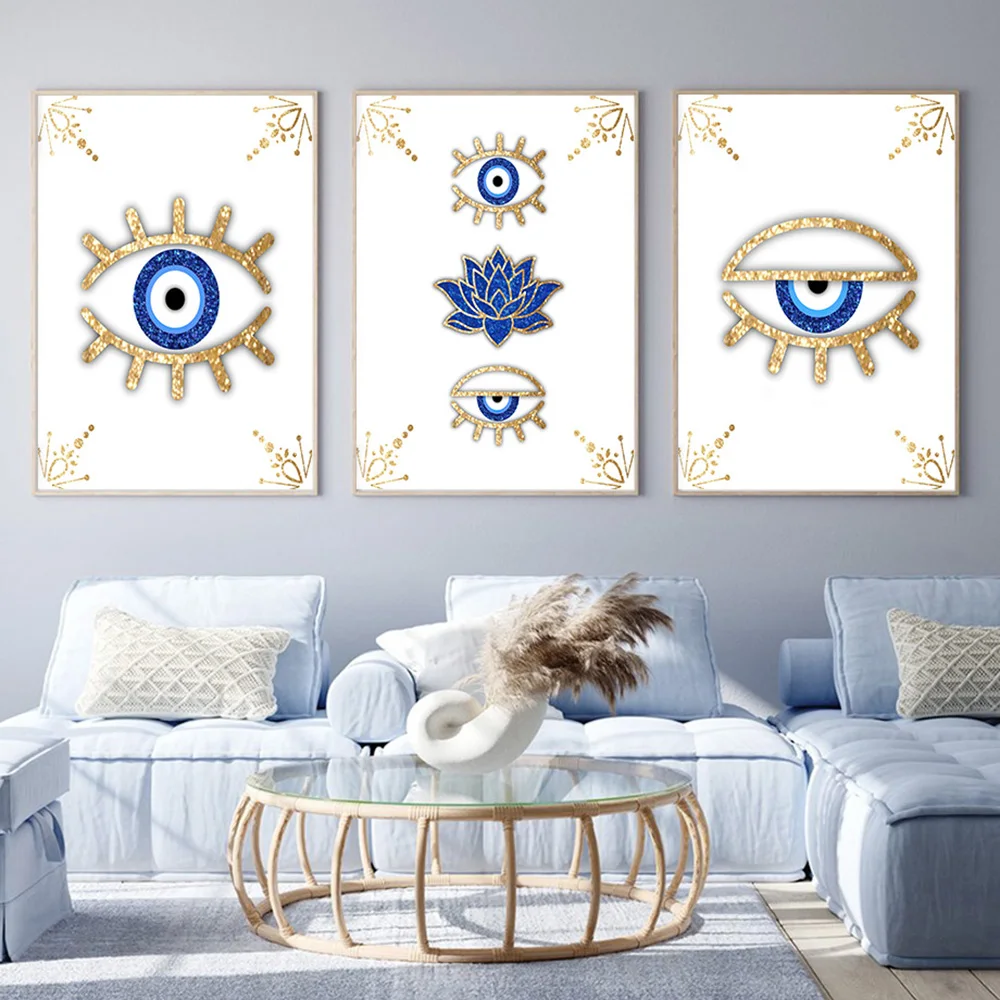 Золотистый синий духовный Лотос сглаза настенная Картина на холсте в стиле бохо минималистичные плакаты и печать Настенная картина для декора гостиной