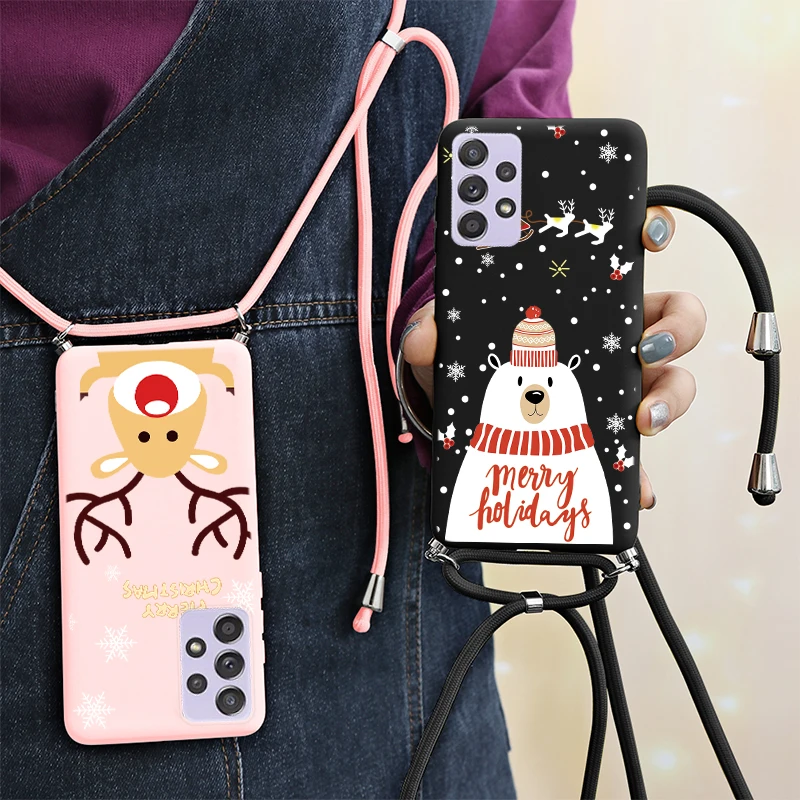 Для Samsung Galaxy A32 4G 5G ремешок шнур Цепочка Рождественский чехол Funda для Samsung A 32 samsunga32 ожерелье кросс-боди ремешок чехол