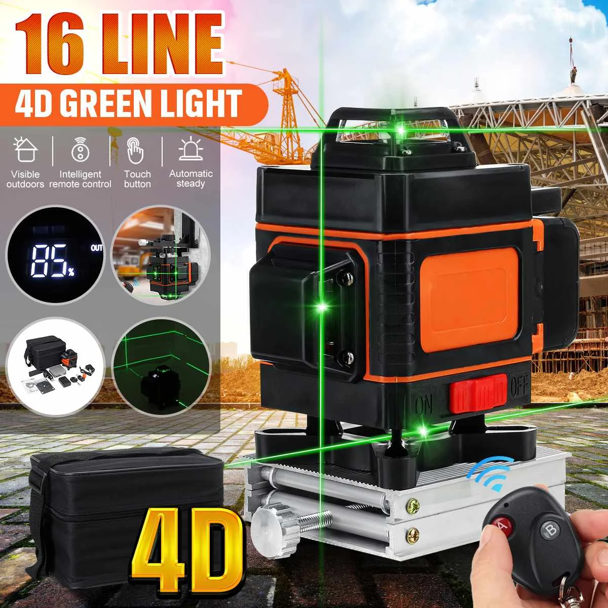 Особенности:-4D 16 линейный лазерный провод для точного позиционирования, подходит для различных случаев для удовлетворения различных инженерных потребностей.Гибкость и стабильность.-Использование зарядки.-Водонепроницаемый, износостойкий, прост в эксплуатации.-Легко носить с собой чехол, обеспечивая быструю и удобную мобильность и хранение.-Широкое применение для крепления вспомогательной плитки, украшения стен, фиксации напольной плитки, лестничных поручней, пушистого потолка, напольной плитки, штукатурки.