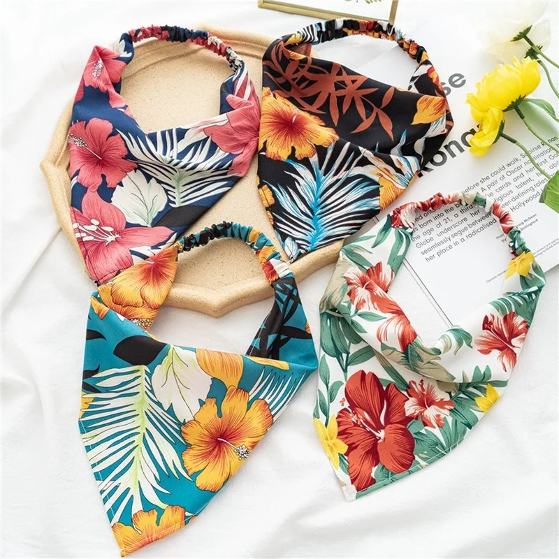 Головной убор женский с большими цветами, эластичная треугольная бандана в богемном стиле, аксессуар для волос