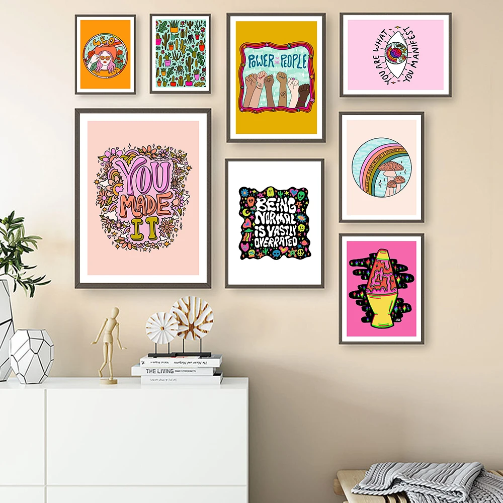 Винтажная розовая Картина на холсте Феминистская художественная Цит...