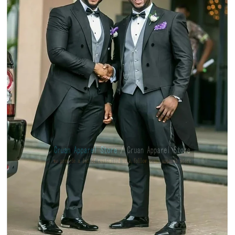 Новейшие Модные утренние костюмы для свадьбы облегающий костюм для лучшего Мужчины костюм для жениха смокинг Блейзер жилет брюки комплект из 3 предметов пальто