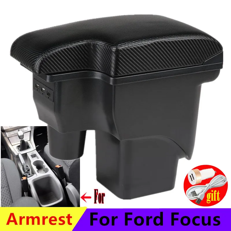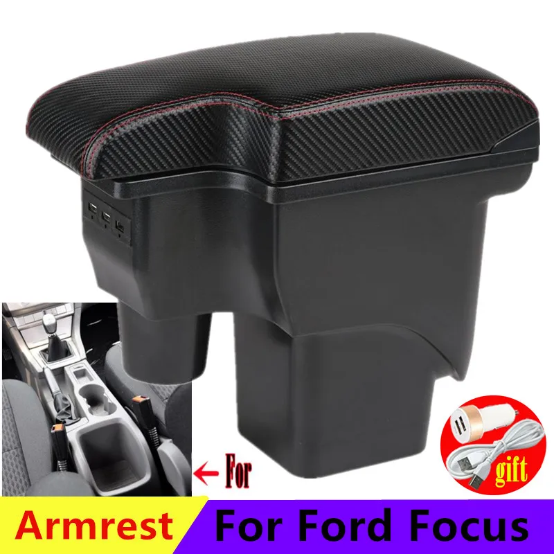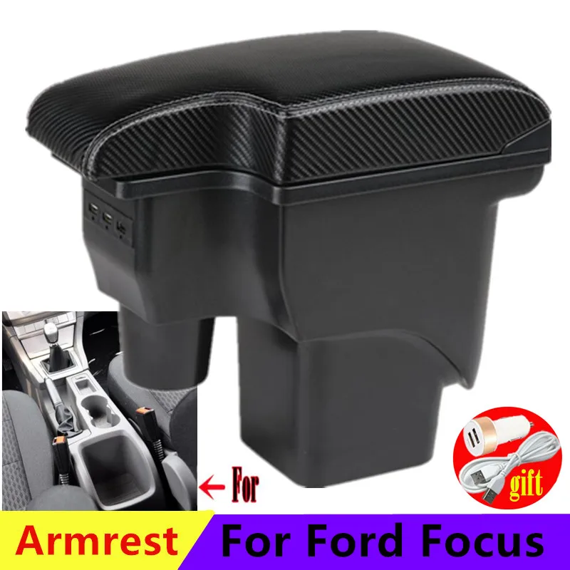 Подлокотник из углеродного волокна для Ford Focus 2, подлокотник для Ford Focus 2 mk2, автомобильный подлокотник, аксессуары для автомобиля, внутренняя коробка для хранения, детали USB