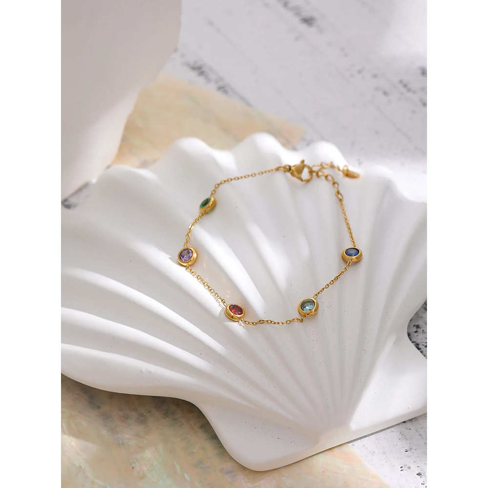 Женский тонкий браслет из нержавеющей стали с фианитами