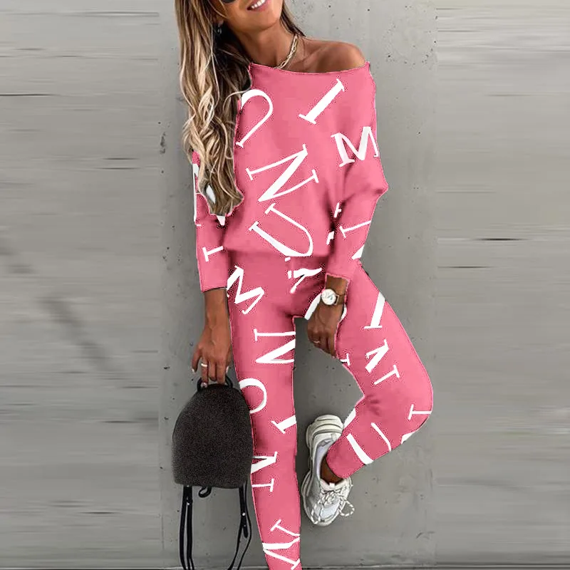 Женский комплект из 2 предметов с надписью, домашний костюм с брюками и длинным рукавом, Повседневная Домашняя одежда, женские брюки, повседневный спортивный женский костюм, новинка 2021
