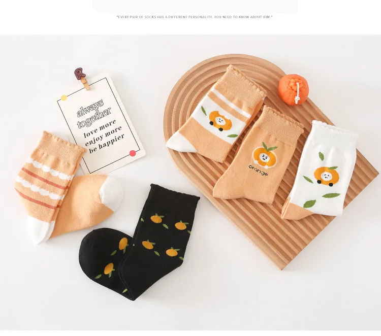 Осенне-зимние милые носки из хлопка с изображением фруктов, модные ...