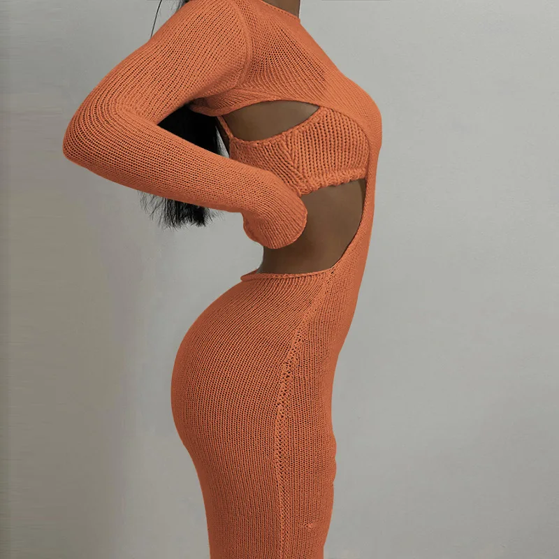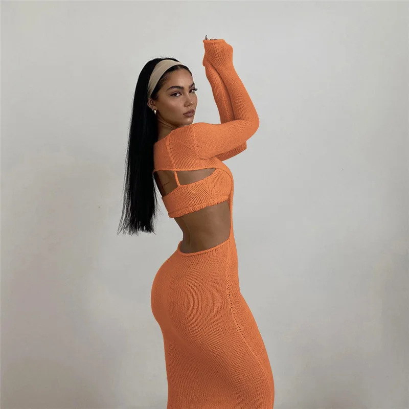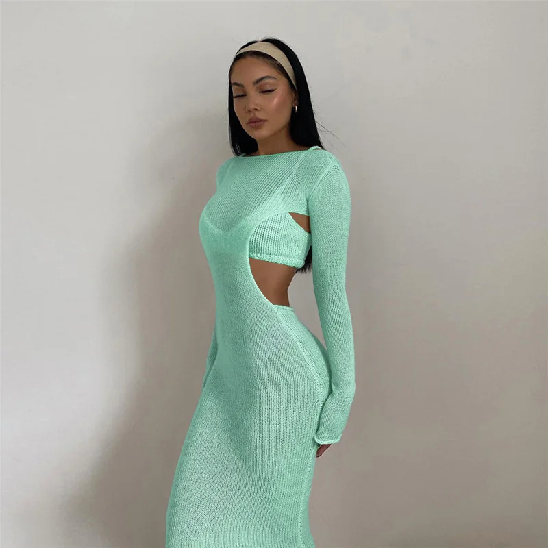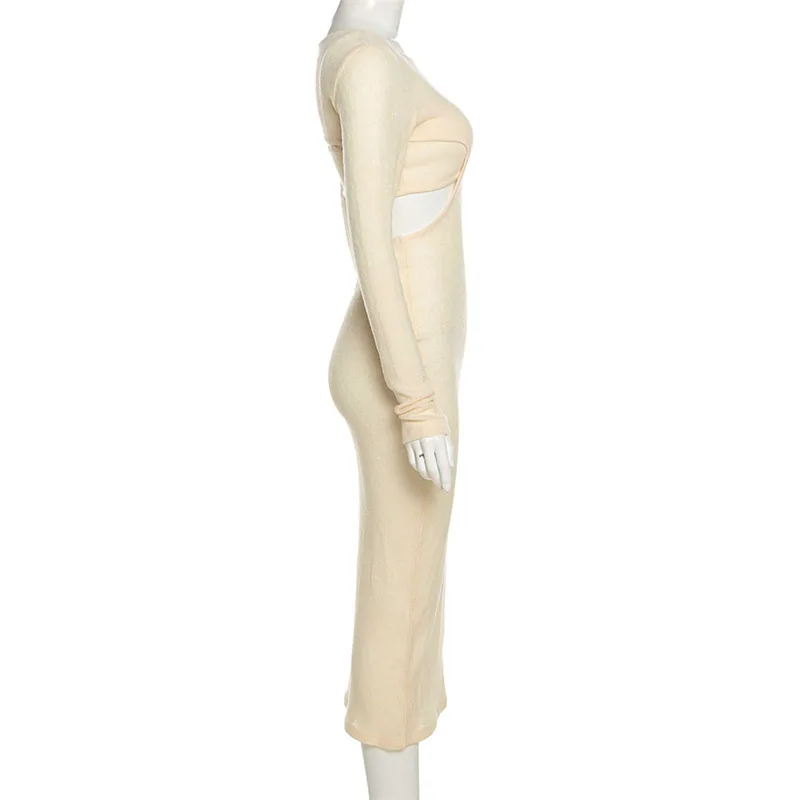 Женское трикотажное платье макси с длинным рукавом, весенние Соблазнительные облегающие длинные платья с вырезами для вечерние Ринок и клубов, Элегантная черная одежда, 2022