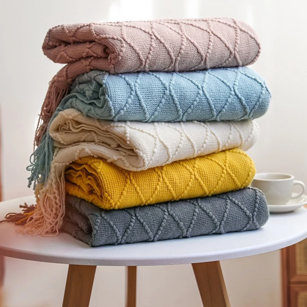 Клетчатое вязаное одеяло, однотонное вафельное тисненое одеяло, нордическое декоративное одеяло для дивана, кровати, широкое вязаное покрывало