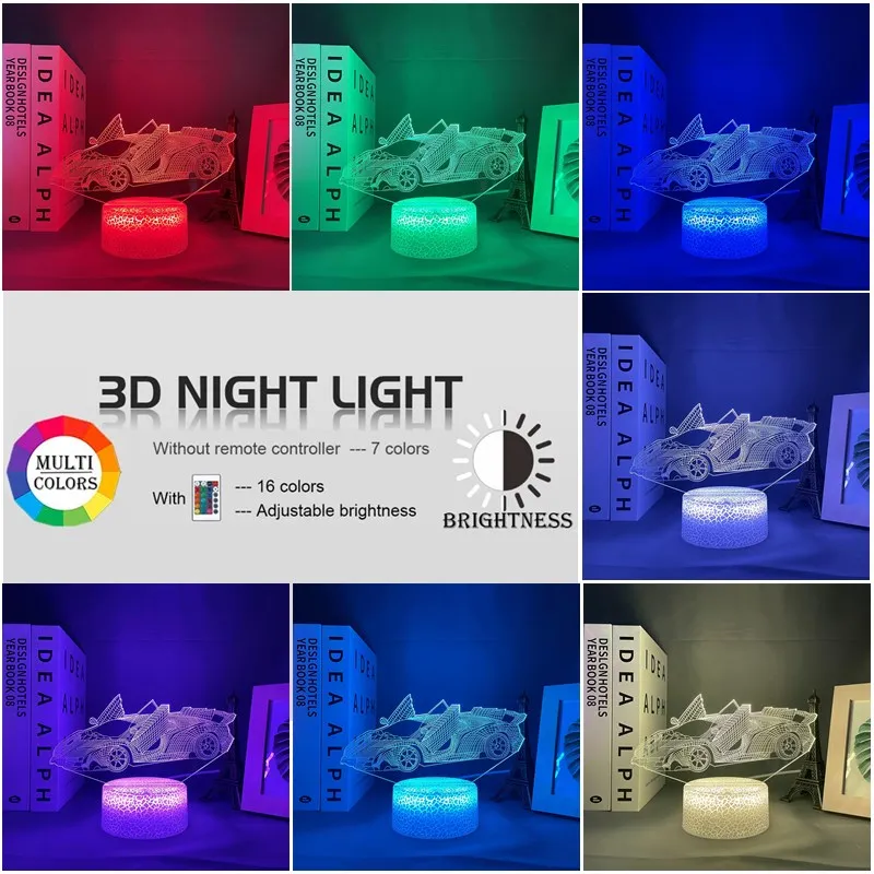 Спортивный автомобиль 3d иллюзия Лампа для детской спальни Декор Св...