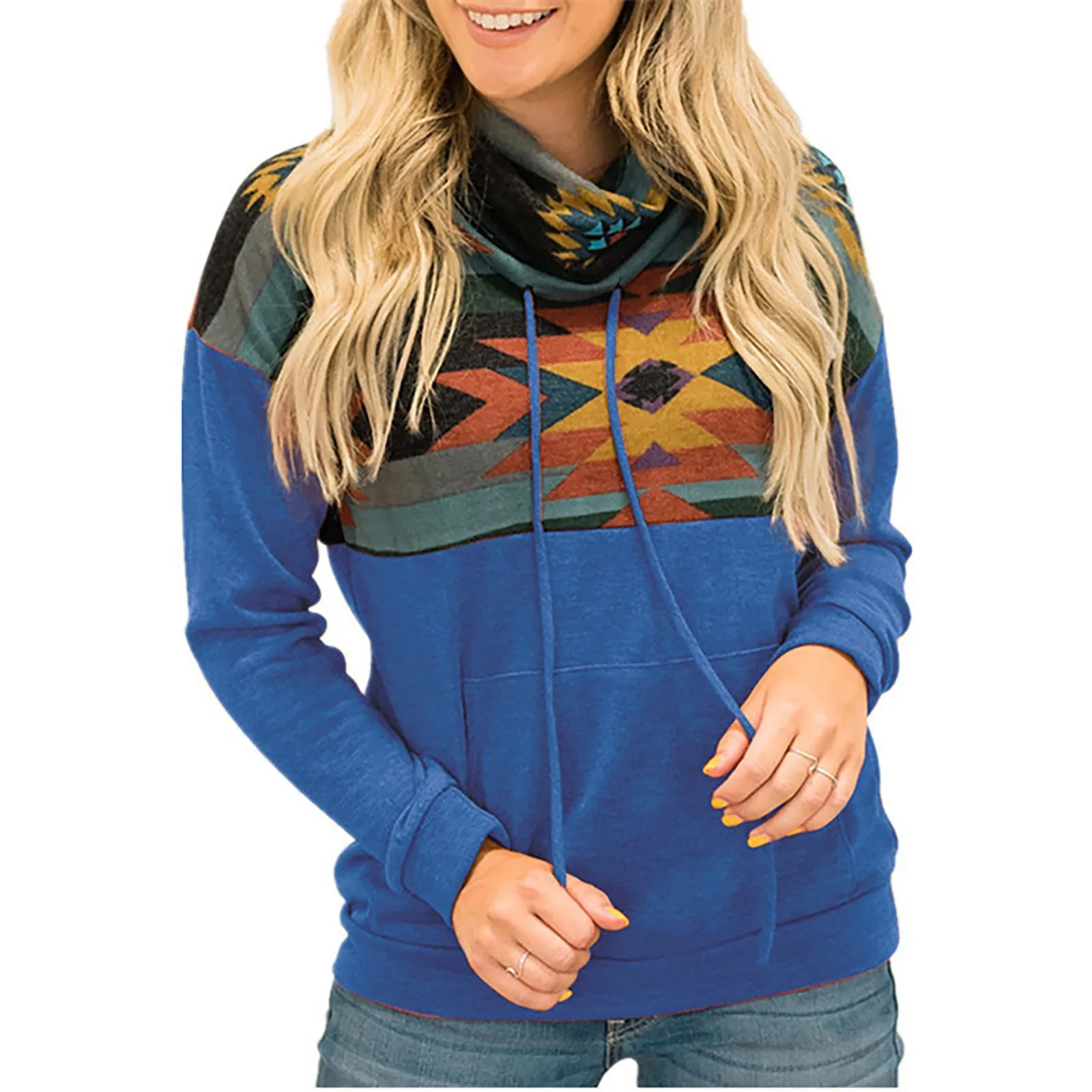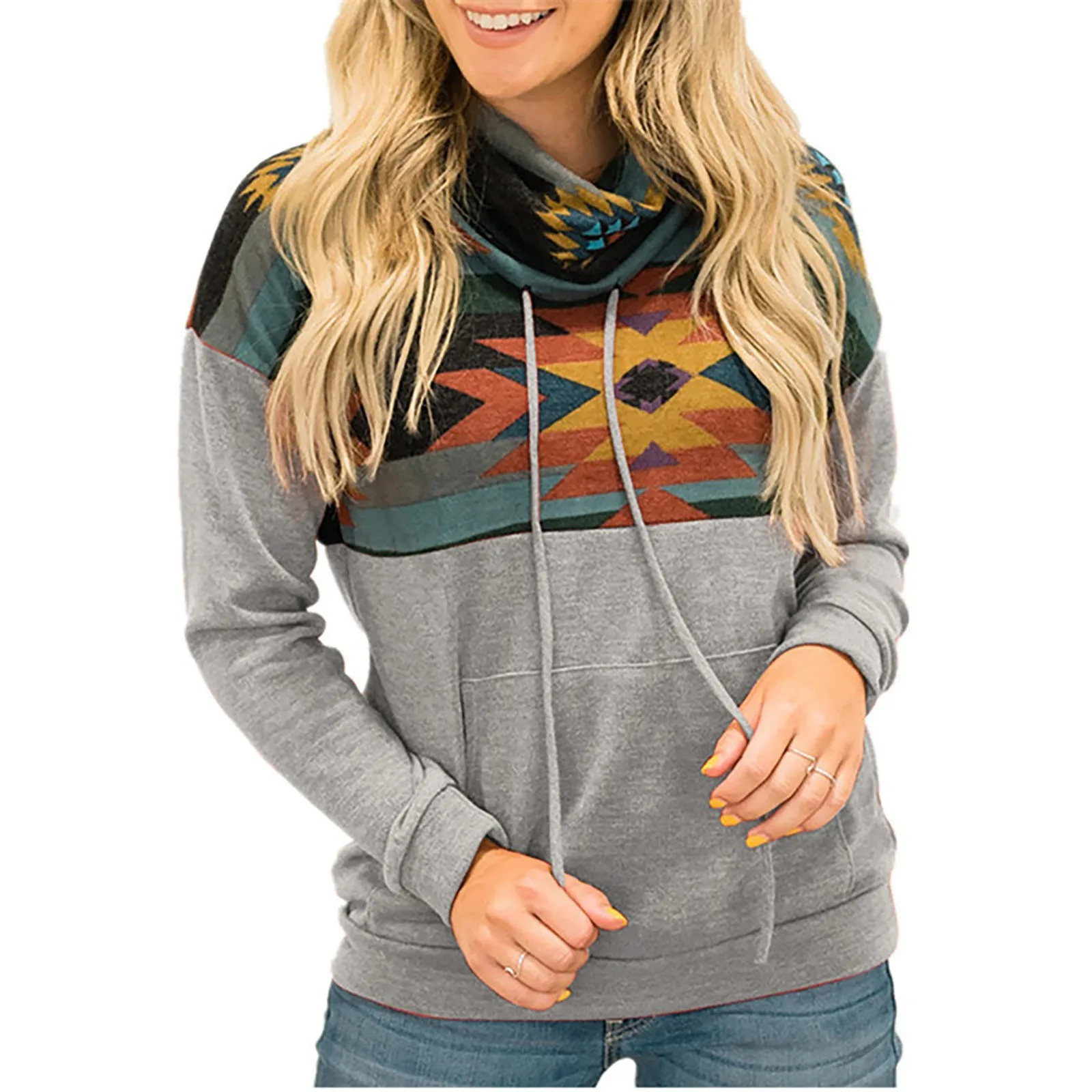 Толстовка с воротником-хомутом, винтажный свитшот с этническим прин...