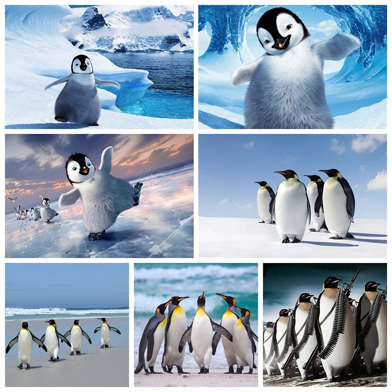 Алмазная живопись Пингвин, вышивка животными, вышивка крестиком, полная квадратнаякруглая картина 5D, мозаика сделай сам, стразы, искусство, Декор, подарок