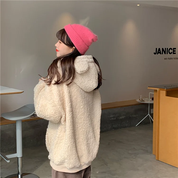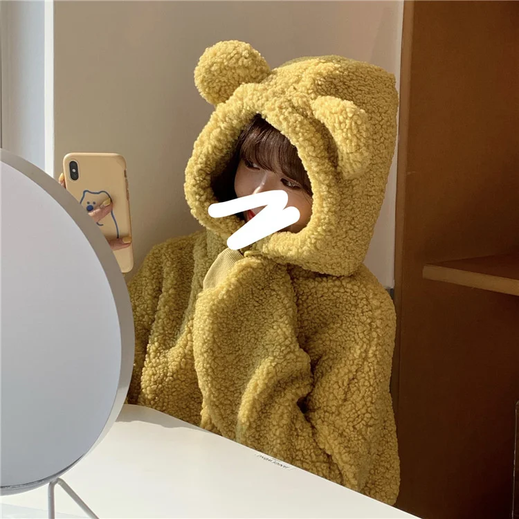 Плюшевая толстовка из ягненка, женское теплое пальто с медвежьими у...