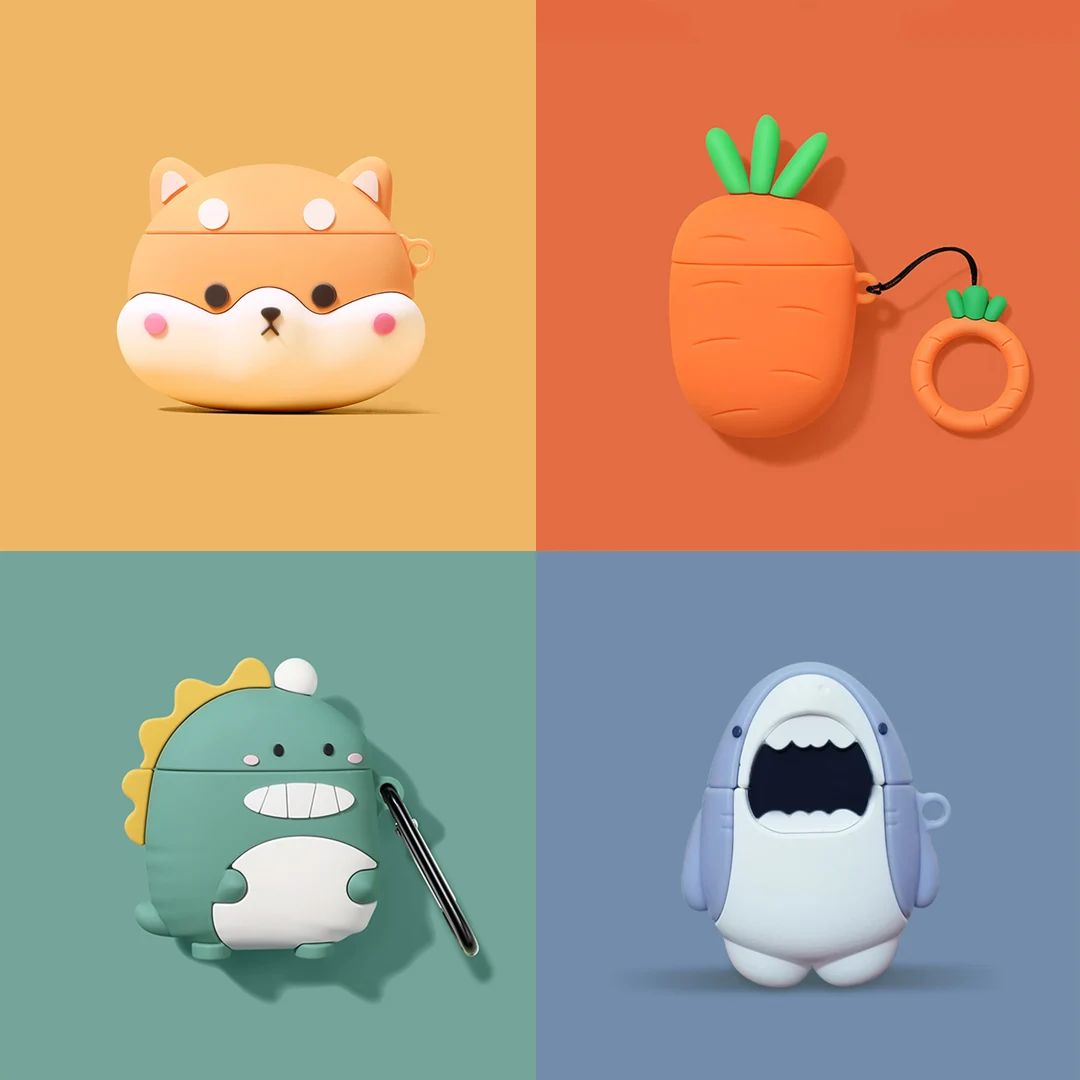 Симпатичный чехол с 3D рисунком корги, собаки, моркови, динозавра, акулы, чехол для AirPods 1 2, мягкий силиконовый чехол для беспроводных Bluetooth наушников