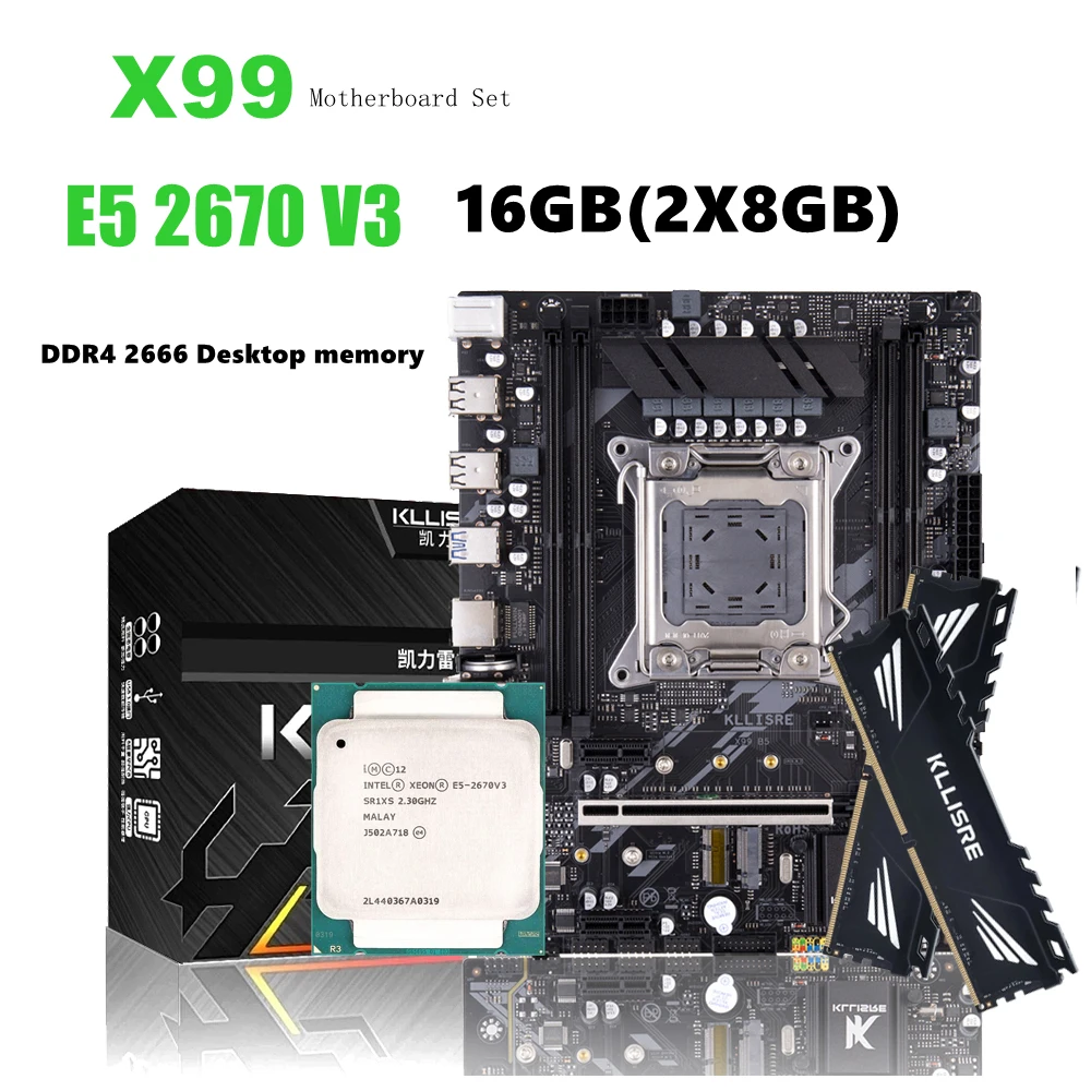 Kllisre X99 комплект материнской платы XEON E5 2670 V3 LGA 2011-3 ЦП 2 шт. X 8 ГБ = 16 Гб 2666 МГц DDR4 память