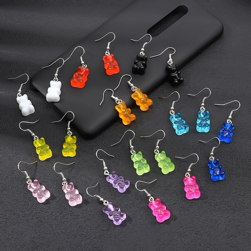 Симпатичные серьги в форме маленького медведя из мультфильма, милая искусственная смола, очаровательные серьги-подвески для женщин