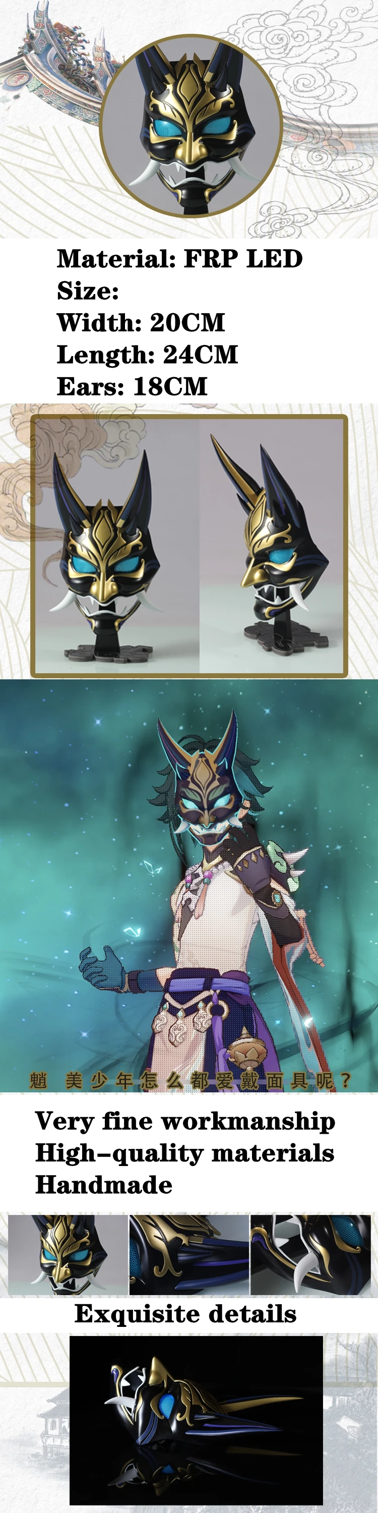 Светодиодная светящаяся маска игра Genshin Impact XIAO реквизит для косплея Хэллоуин FRP украшения для взрослых игрушки Аксессуары для аниме ракша