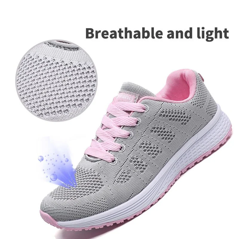 Модные женские теннисные туфли, легкие дышащие женские спортивные туфли, Прогулочные кроссовки, на шнуровке, белые женские уличные повседневные туфли на плоской подошве
