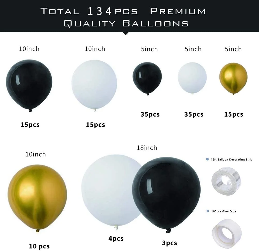 Набор декоративных шаров, черно-белых металлических, 134 шт.