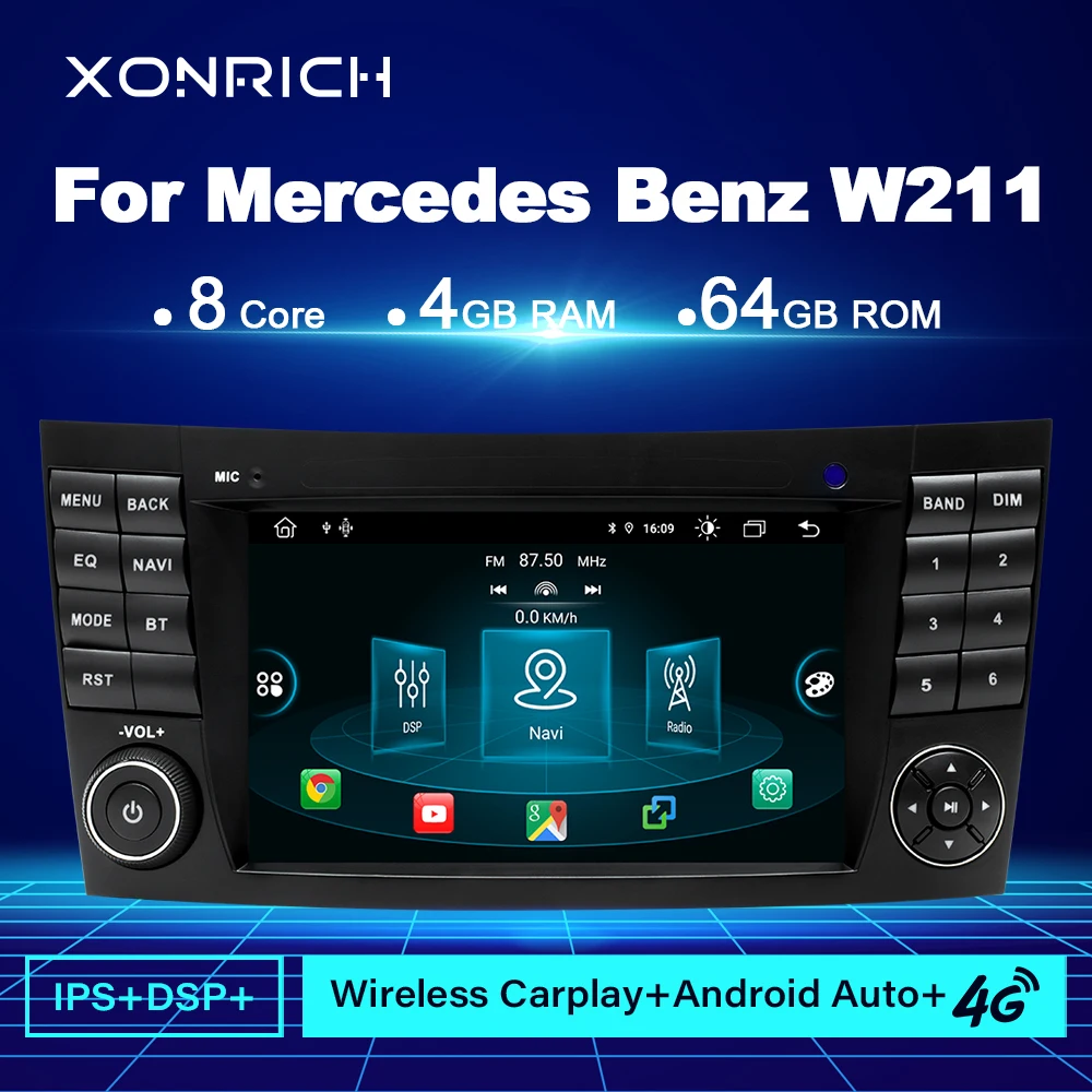 Автомобильный мультимедийный плеер Carplay Android 11 для Mercedes Benz E-class W211 E200 E220 E300 E350 E240 E270 E280CLS CLASS W219 DSP IPS