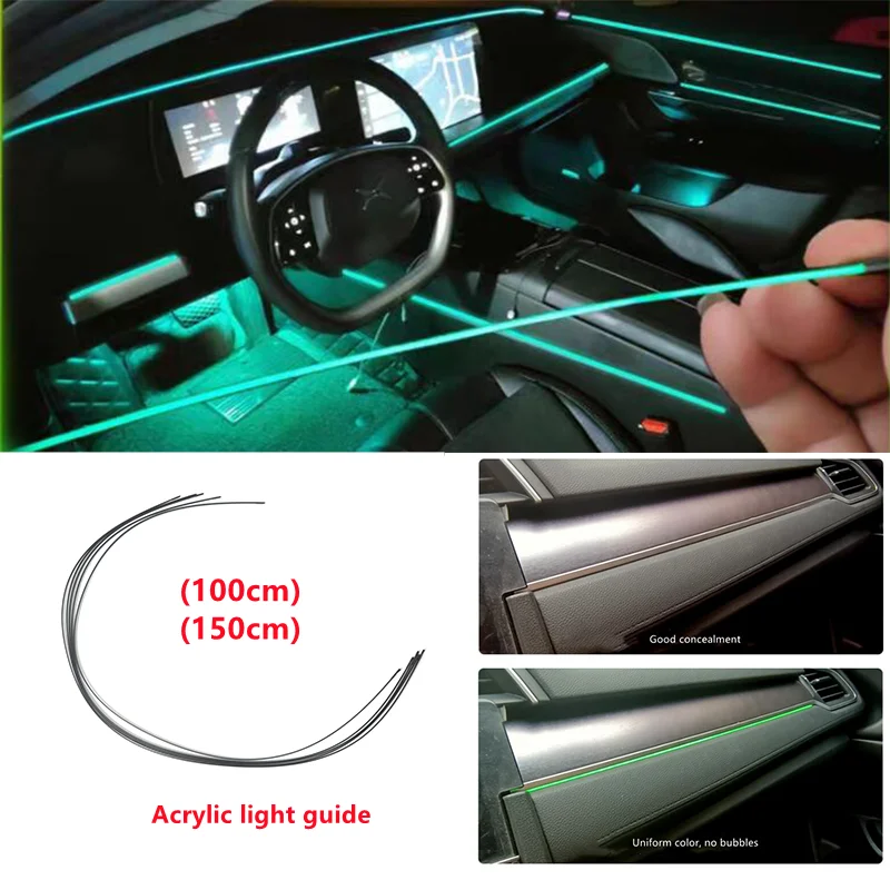 RGB Автомобильная интерьерная оптическая акриловая полоска, окружающий светильник, приложение, Bluetooth контроль, атмосферная лампа, беспроводное автономное соединение