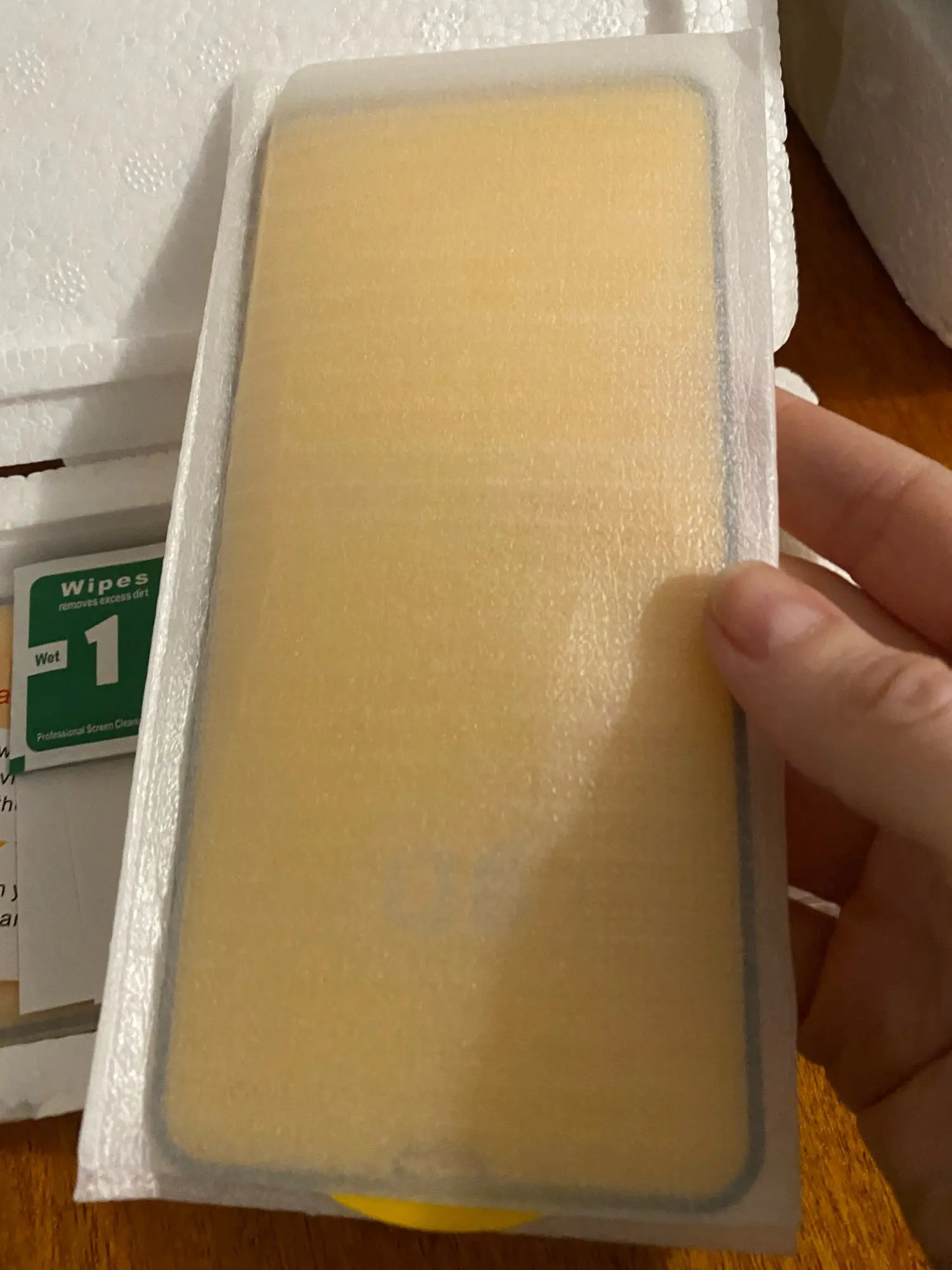 Получила посылку в пункте выдачи,прибыла быстро.Стекло упаковано в пенопласт,все целое (2шт). С черной рамочкой по периметру.Приклеилось отлично.Посмотрим в деле.) Заказом довольна.Такое же покупала у официалов в разы дороже.
