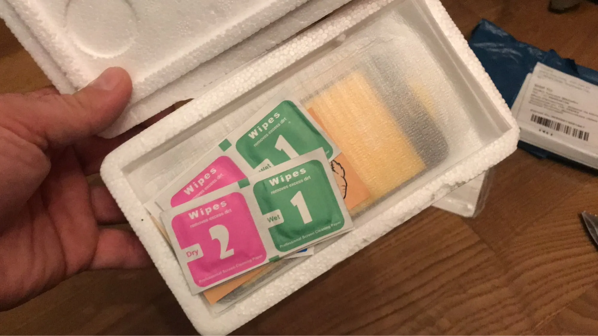 Пришло 2 стёкла, целые, наклеились хорошо, без пузырей