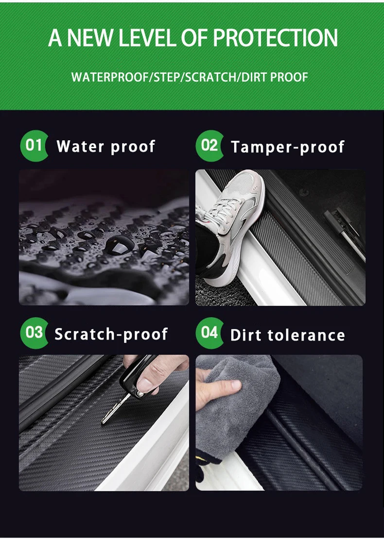 4 шт. протектор порога двери из углеродного волокна, кожаная Винило...