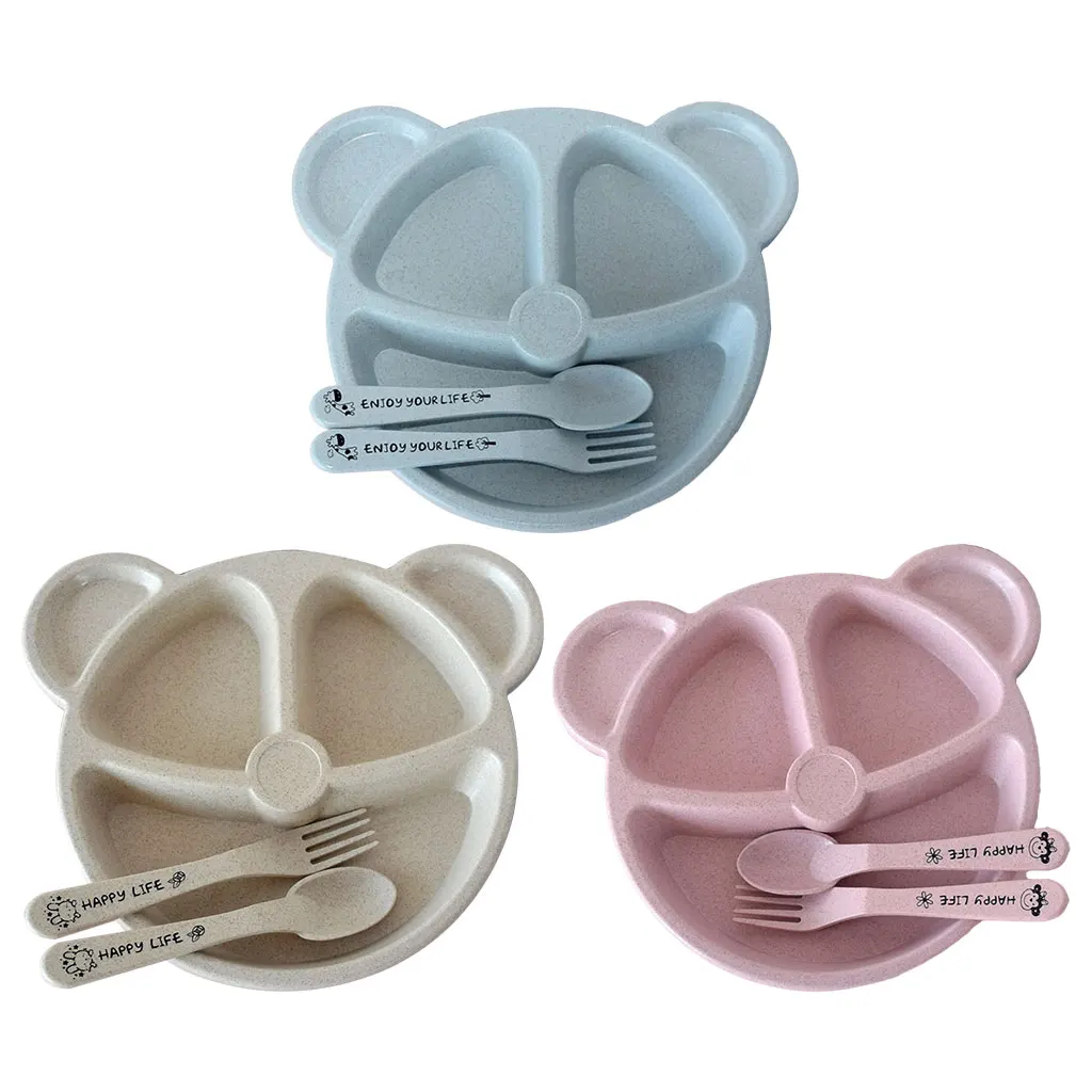 Набор разделенных тарелок, легкая вилка с 3 отделениями для здоровья, детская посуда, столовая посуда для обеда, тренировок, обеда для малышей