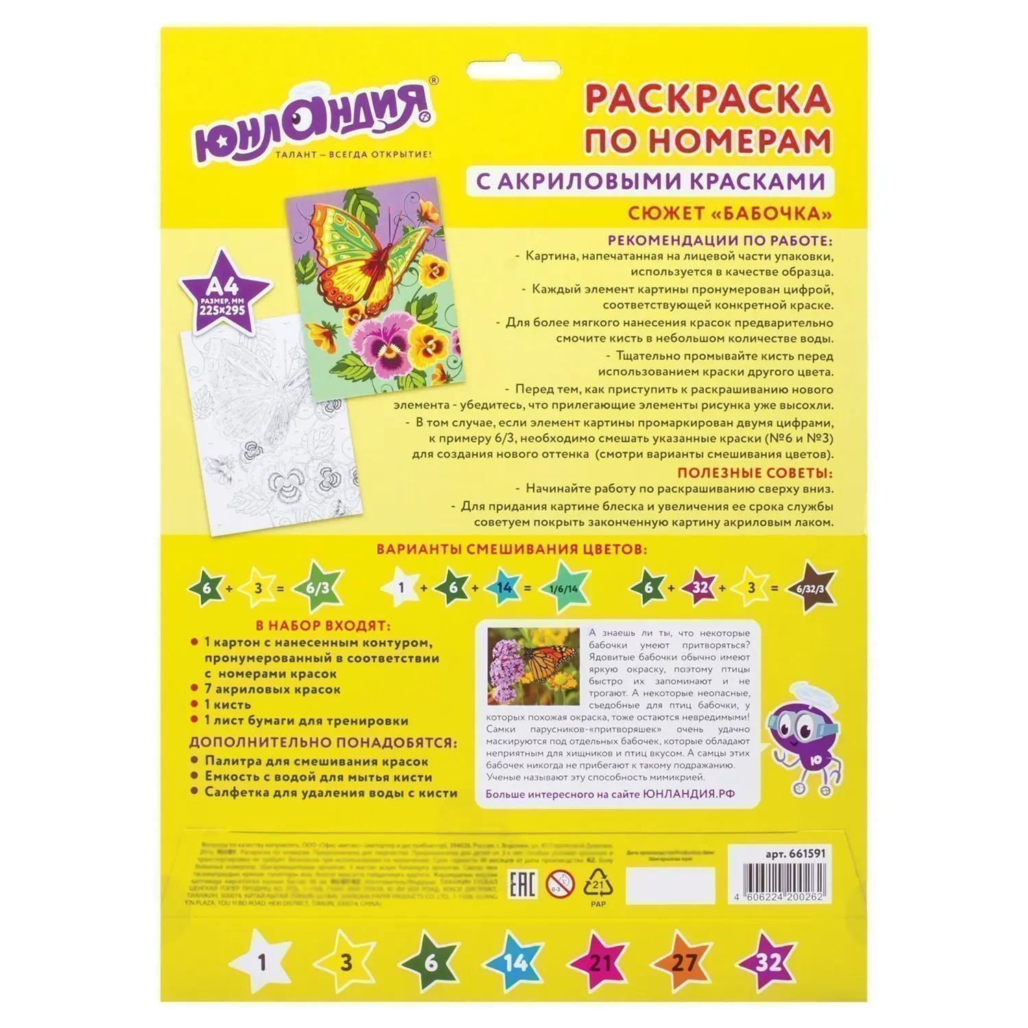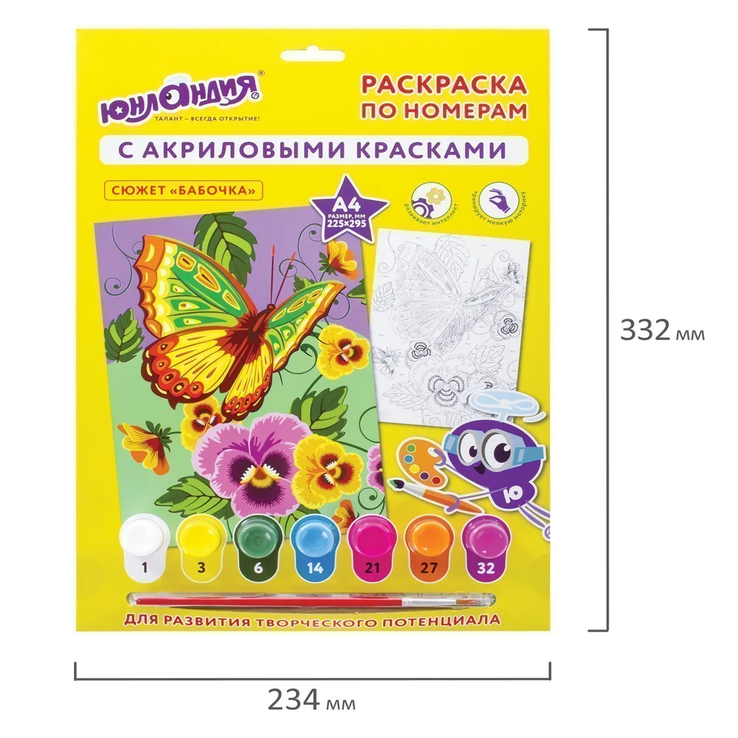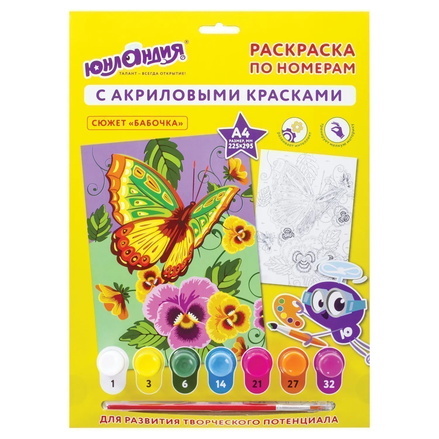 Раскраска по номерам ЮНЛАНДИЯ "Бабочка" А4 (акриловые краски, кисть) 661591