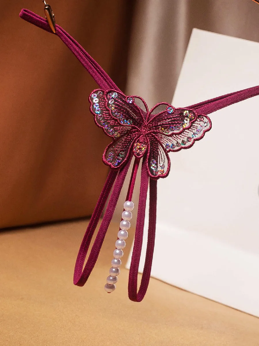 Женское нижнее белье rotic трусики с жемчужинами, сексуальные сетчатые трусики с вышивкой в виде бабочек, с низкой талией